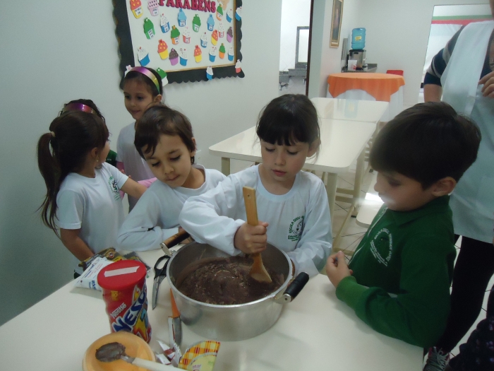 Alunos do Pré III A e B fazem brigadeiro para o Dia Das Mães.