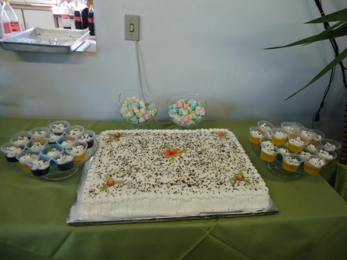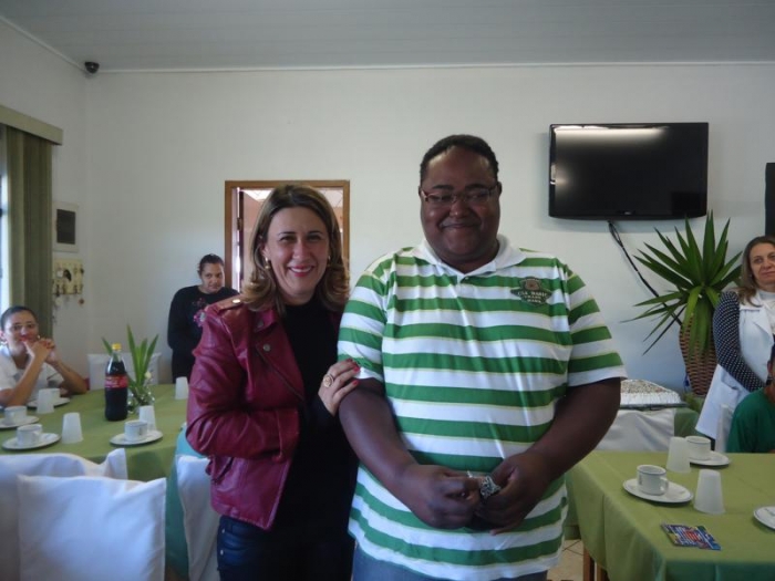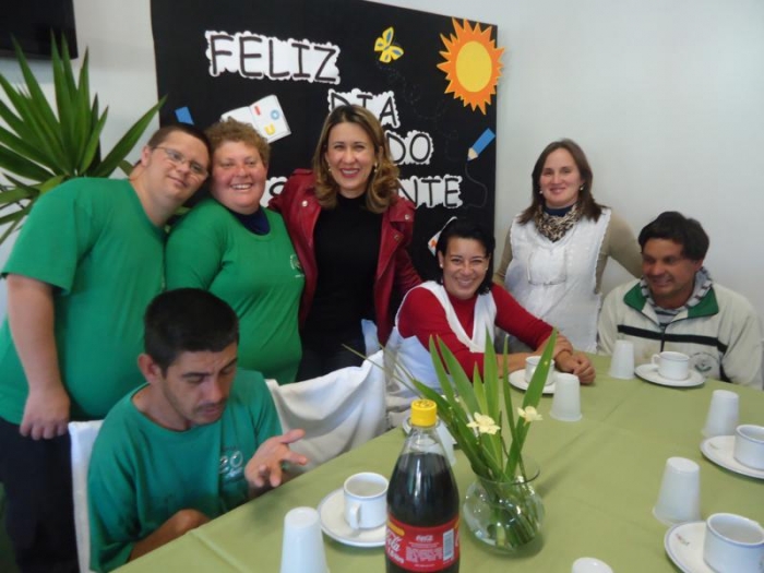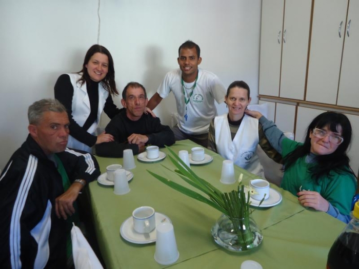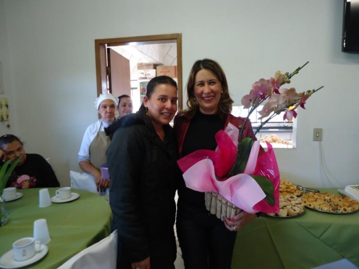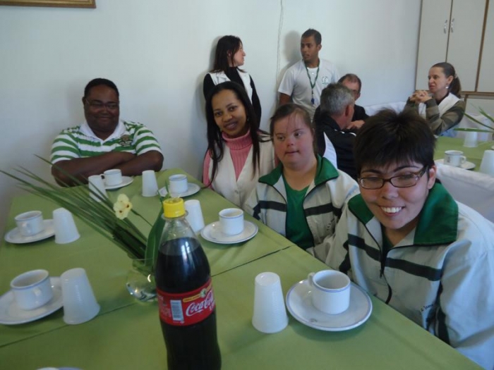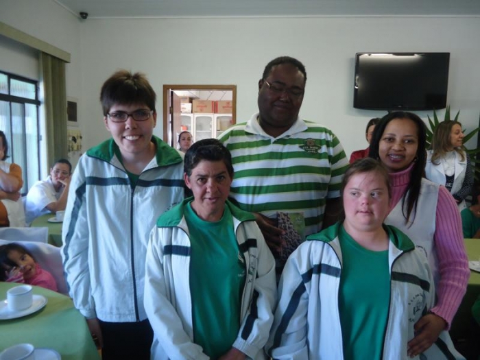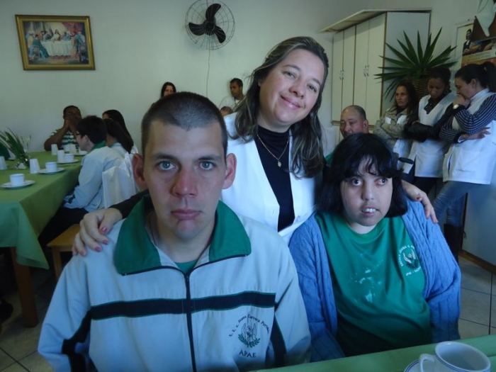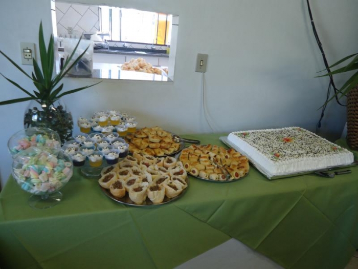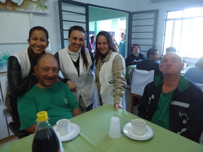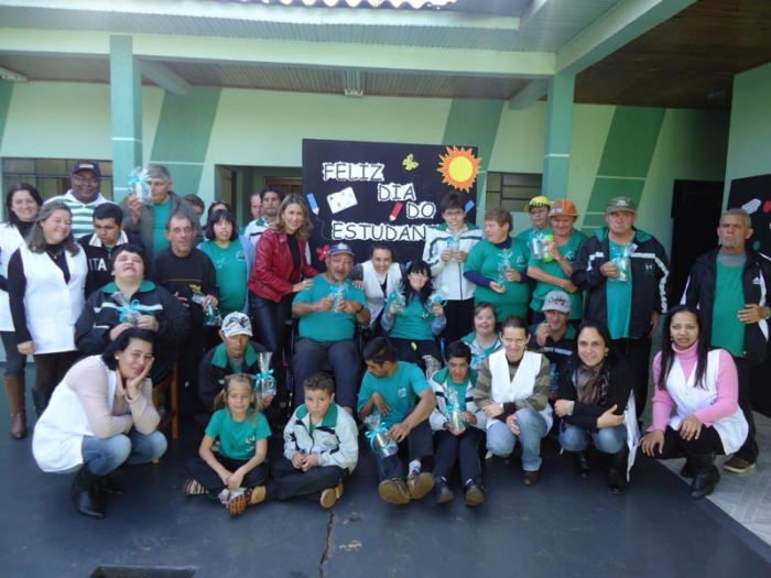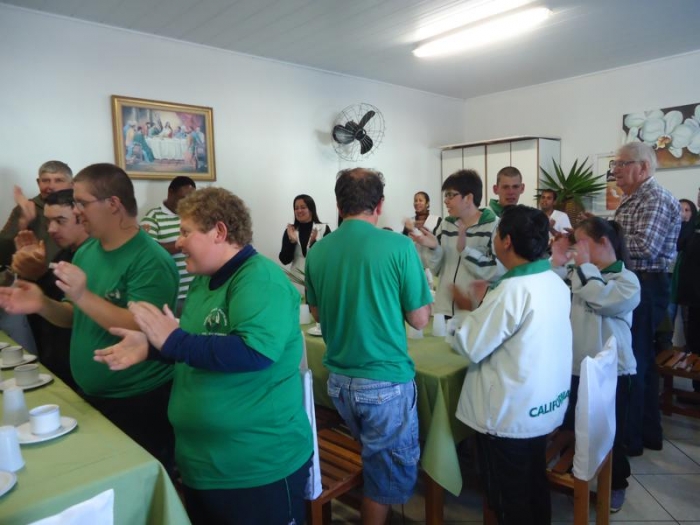 Alunos e funcionários participam de um café da tarde em comemoração ao Dia do Estudante