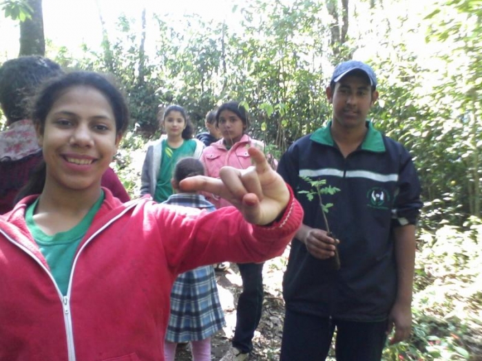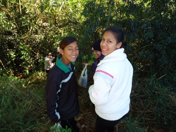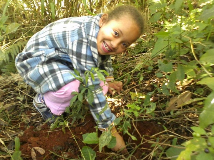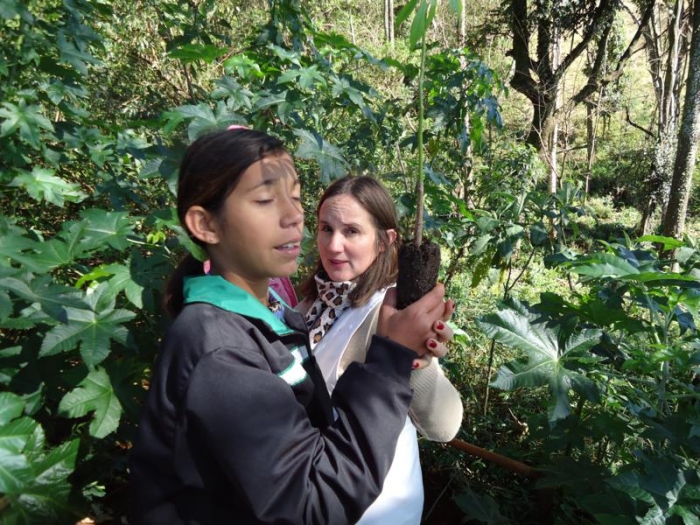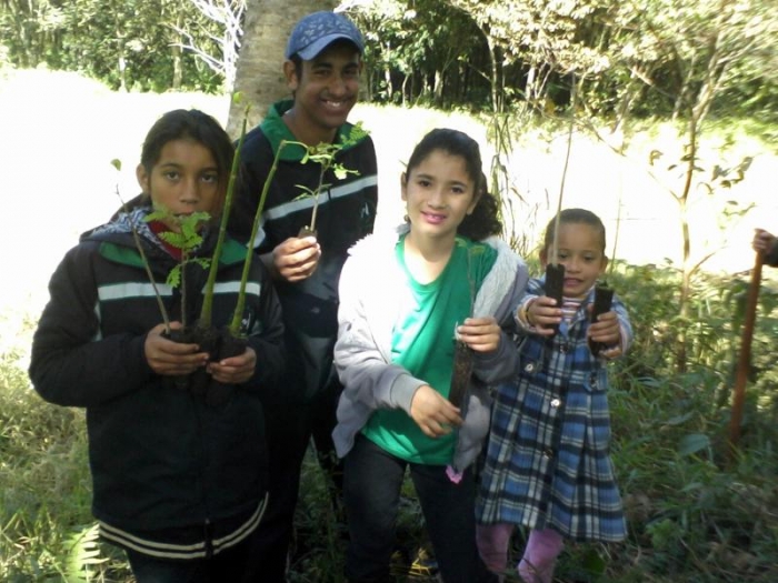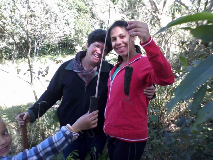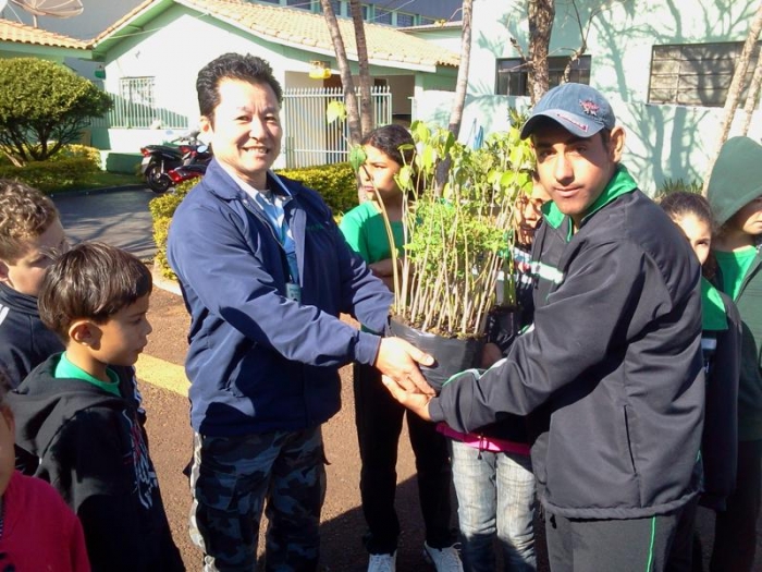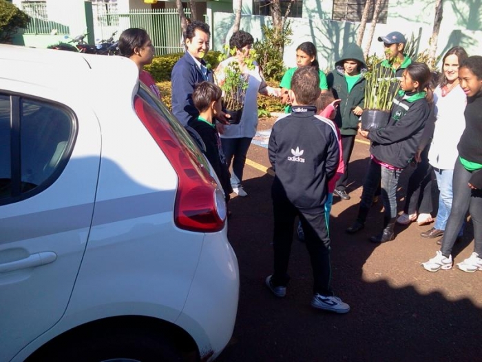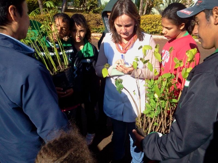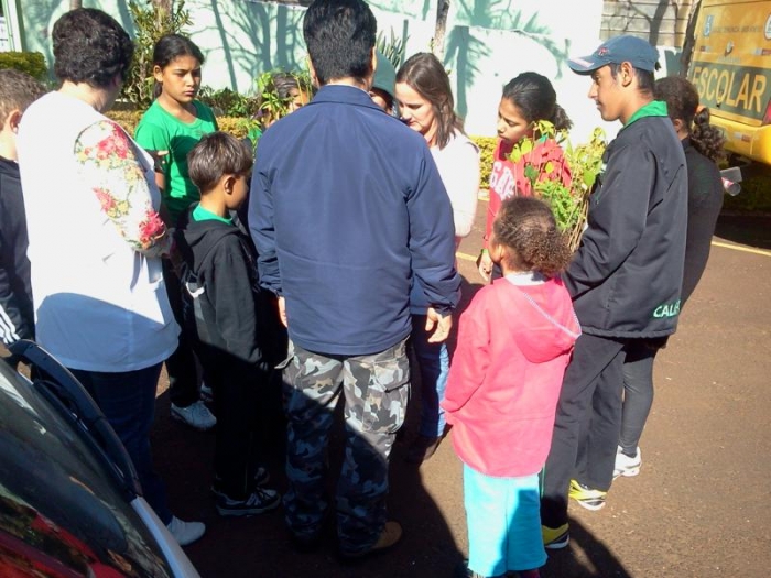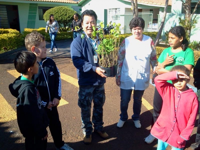 Professora Diva, Vanirce e os alunos recebem da EMATER mudas de árvores