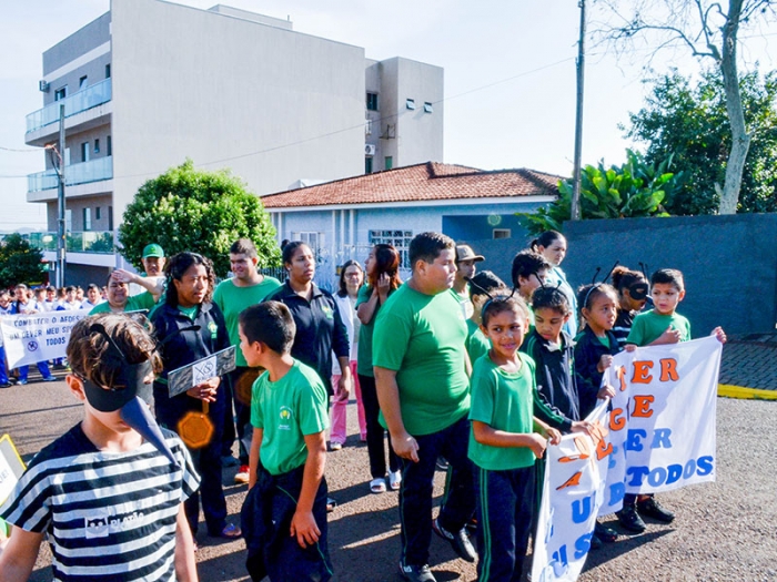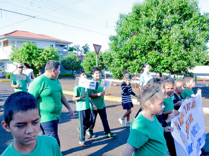Passeata ocorrida no dia 26 de abril, contou com a participação dos alunos da Escola Joana Carreira Portelinha.