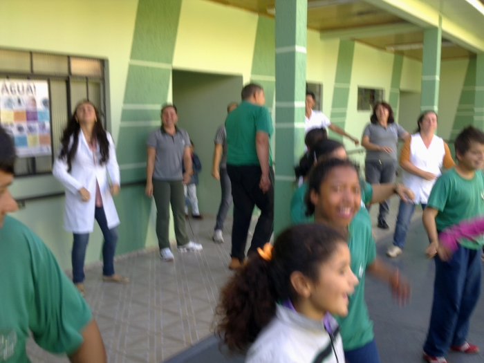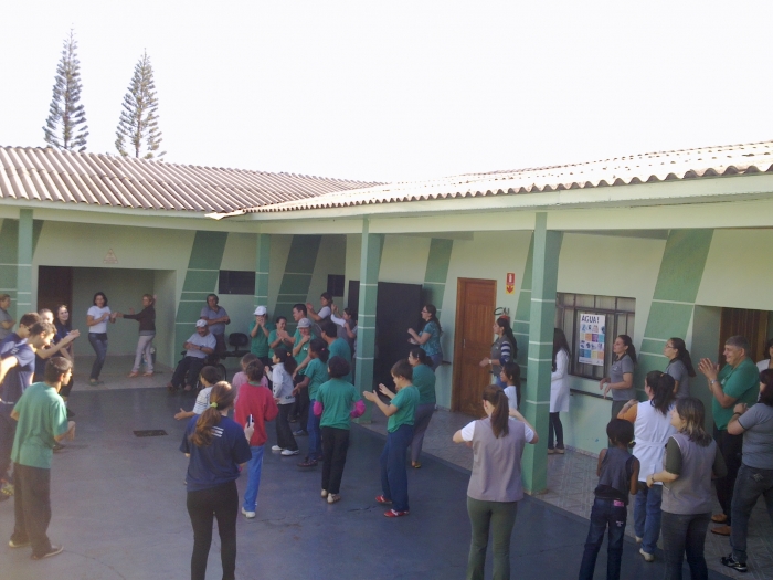Funcionários e alunos participaram do Dia do Desafio no turno da manhã e da tarde. Profissionais da área de Educação Física do município proporcionaram momentos de alongamento seguida por coreografias e por fim fizeram um gostoso relaxamento.
