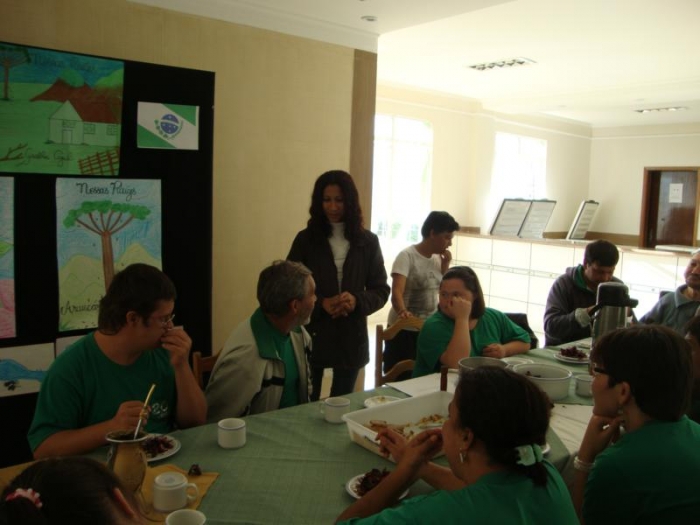 Os alunos da EJA do período vespertino (professores: Rose, Vanirce, Cássia, Adriana) deram início neste dia 1º de junho ao projeto “Nossas Raízes”, resgatando a cultura paranaense através da gastronomia com comidas típicas do Paraná. Na ocasião foram trabalhadas a lenda da Gralha Azul e da Erva Mate. O aluno Marcelo retratou as raízes paranaenses através de belíssimos desenhos e para encerrar o evento, a aluna Aparecida declamou uma poesia de sua própria autoria.
