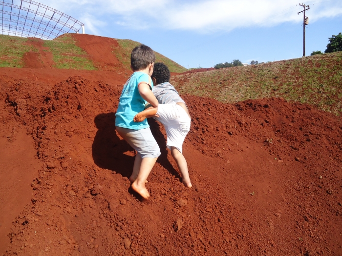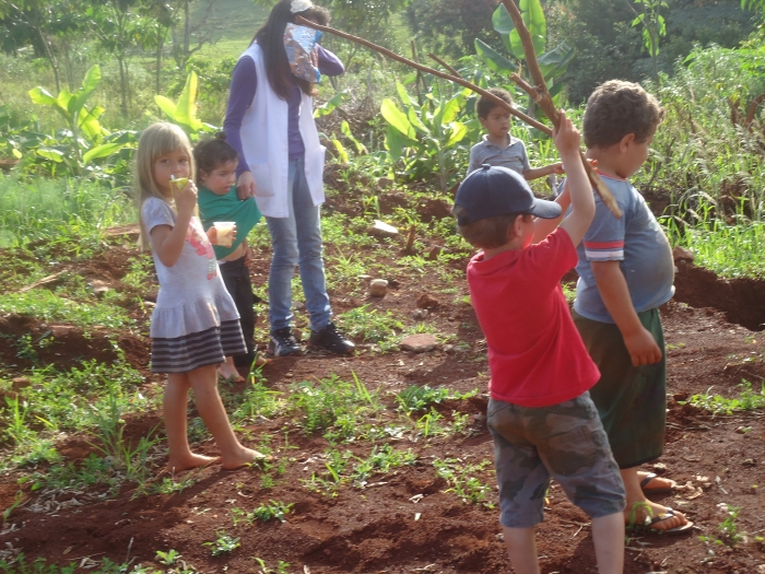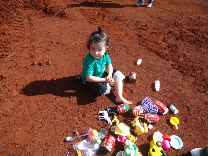 Os alunos da Educação Infantil desfrutaram de mementos de muita diversão com brincadeiras na terra para explorar a área sensório perceptiva e psicomotricidade.