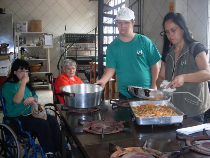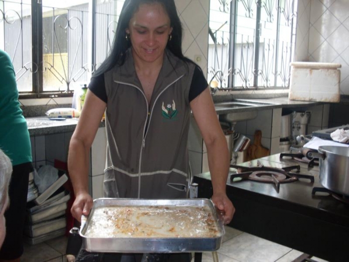 Após o preparo da receita os alunos experimentaram a deliciosa torta.
