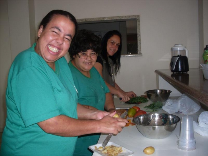 Os alunos do EJA A e EJA B, professoras Adriane e Alessandra prepararam uma receita de torta Salgada com legumes e verduras que os alunos trouxeram.