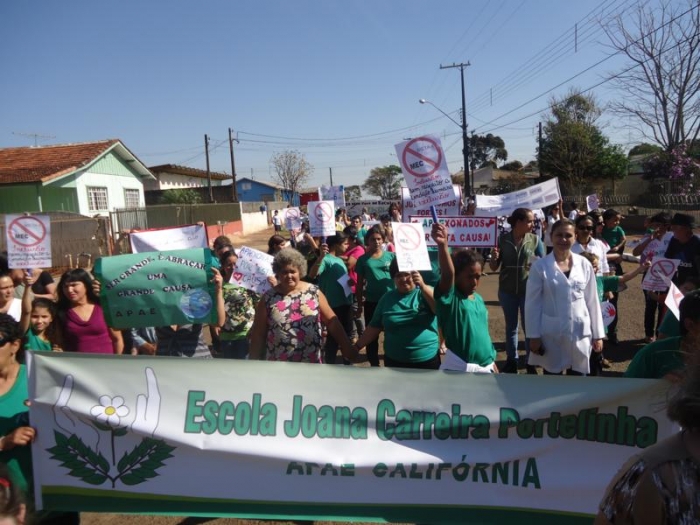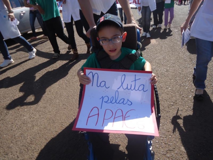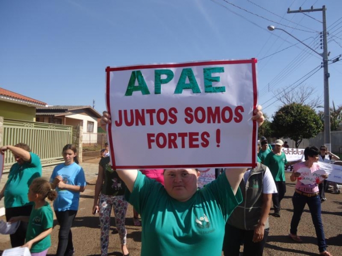 Hoje, sete de agosto, todos os alunos, pais, professores, gestores, funcionários em geral da Apae, bem como colaboradores, voluntários e escolas do município, saíram as ruas manifestando seu protesto quanto a mudança da META 4.
