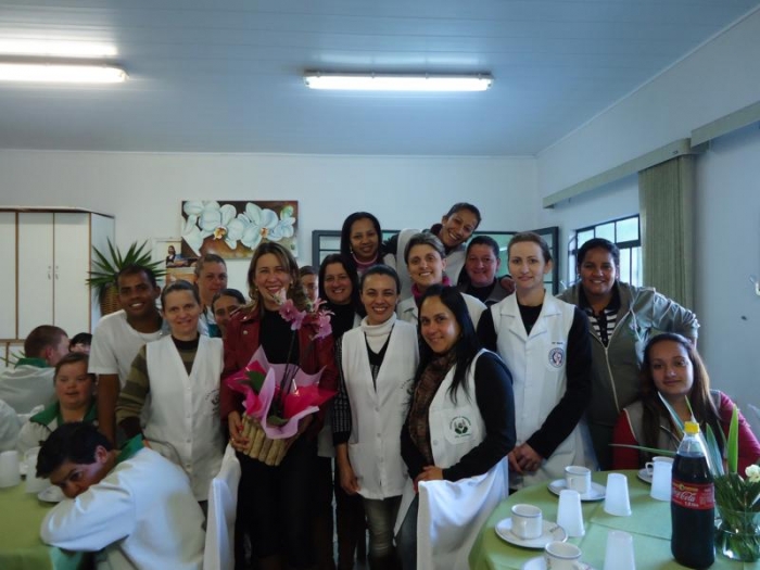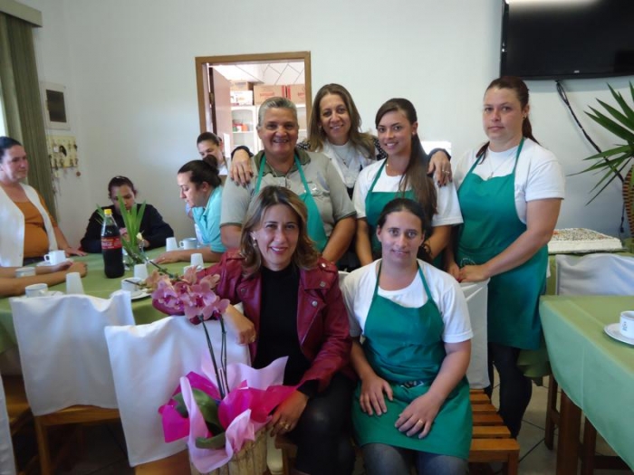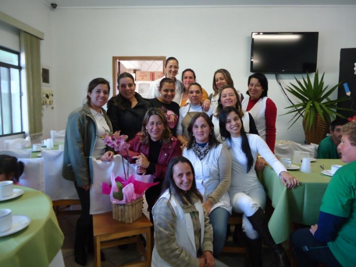 Alunos e funcionários participam de um café da tarde em comemoração ao Dia do Estudante