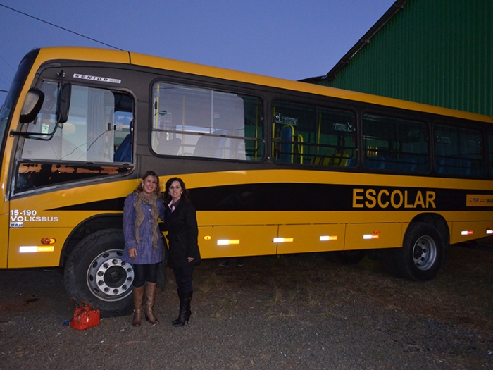 A prefeita de Califórnia Ana Mazeto Gomes e a diretora da Apae Marcia E. Parro Claudino, participaram no dia 16 de agosto em Guarapuava, da solenidade de entrega dos ônibus escolares adaptados para as pessoas com deficiência.