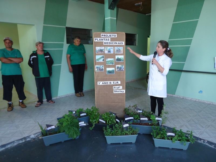 A professora Shirley, nos deu uma aula com seu projeto das Plantas Medicinais, os alunos colaboraram no diálogo e no entendimento das questões ligadas à saúde.