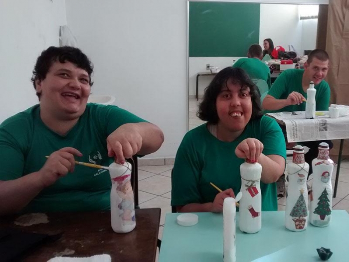 Com o intuito de trabalhar o currículo funcional, iniciamos os preparativos para as festas de final de ano. Os alunos do 3º Ano “C”, Professora Adriane, começaram a confeccionar enfeites natalinos utilizando materiais recicláveis e naturais: garrafas de vidro, pinha, velas, cordas, papéis, tinta, etc.