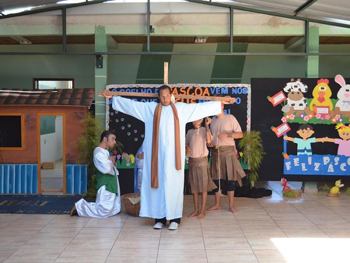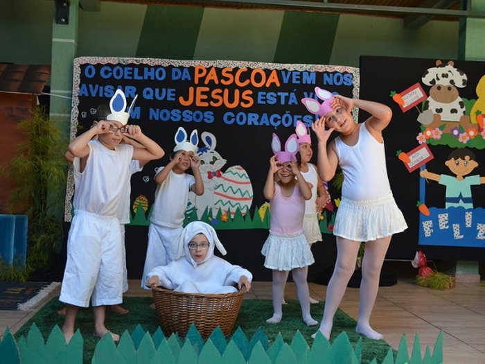 Os alunos fizeram apresentações de três datas importantes do nosso calendário: Dia do Índio, Páscoa e Dia do Livro. São três elementos de estudo que merecem ter destaque no contexto escolar. Contudo, cada família com suas especificidades farão essa celebração conforme sua crença, costume ou tradição.