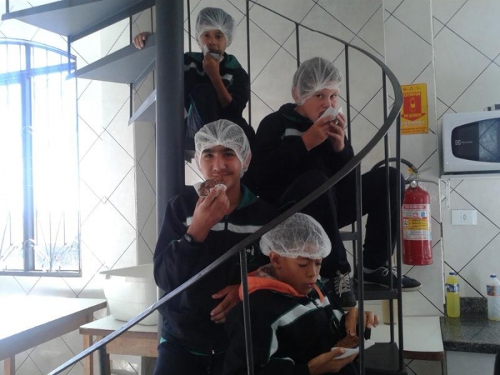 Os alunos degustaram o bolo e ofereceram a todos da equipe escolar.