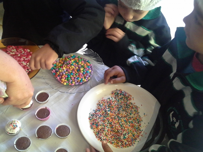 Os alunos da 3ª Etapa A Professora Mônica e Pré Escolar Professora Verônica e auxiliar Erli, realizaram no dia 28/05 uma atividade extraclasse envolvendo a disciplina de matemática. Os alunos foram até a casa da professora Verônica, fizeram cupcake envolvendo quantidade, cor, espaço, forma e a receita passo a passo.