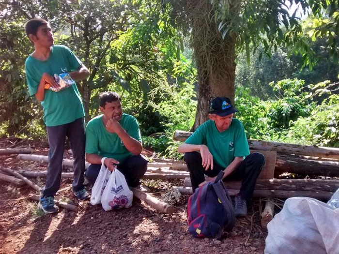 Complementando as atividades de Alimentação e Nutrição, no dia 15/04 os alunos foram visitar o sítio do colega de sala Claudemir, onde durante o trajeto observaram a paisagem natural, também colheram frutas e legumes (poncãs, laranjas, mexericas e abóboras).