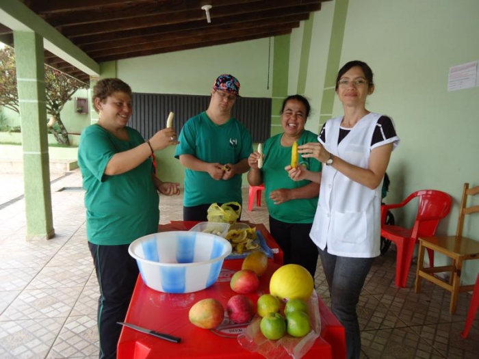No dia nove de dezembro foi desenvolvida com as turmas da EJA, 5º Ano A prof.ª Mariza, 5º Ano B prof.ª Adriane e 2º Ano da prof.ª Sabrina, uma atividade sobre alimentação e nutrição, fizeram uma salada de frutas com exposição de cada fruta e diálogo sobre a importância de uma alimentação saudável. Os alunos ajudaram a descascar e picar as frutas. Em seguida, montaram a salada de frutas sem adição de açúcar.