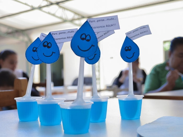 A professora Verônica do Ensino Fundamental 2ª e 4ª Etapa e seus alunos demonstraram através de um jogral, os cuidados que devemos ter com esse recurso precioso, sensibilizando para os cuidados e preservação da água, e despertando assim o consumo consciente.