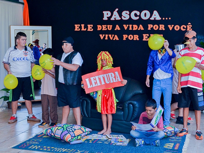 No dia 18 de abril, nos períodos da manhã e tarde, os alunos da escola Joana Carreira Portelinha, modalidade de Educação Especial e alunos da Escola Diego Henrique Gomes, com seus respectivos professores, realizaram um trabalho inclusivo na inclusivo com temas referente as datas comemorativas do mês de abril: Dia do Índio, dia do livro e a comemoração da Páscoa, que celebraremos neste domingo.