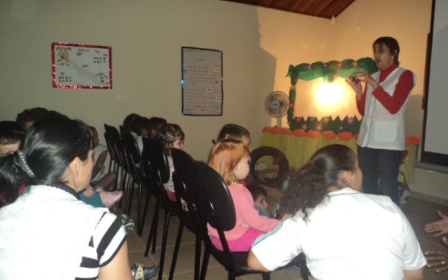As professoras Sabrina e Alessandra levaram os alunos da Escolaridade A e B para participar de um importante teatro sobre a “Dengue”, realizado na Biblioteca Municipal, promovido pelo Centro Municipal Educacional “João Gimeni”. Os alunos tiveram a oportunidade de reforçar seus conhecimentos na prevenção dessa doença unindo todos contra a Dengue.