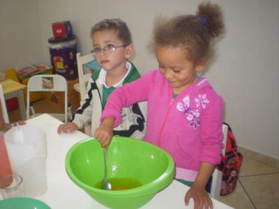 Para tornar essa aprendizagem mais agradável e interessante utilizaram da estratégia de preparar uma guloseima que a criançada adora: preparar passo a passo a receita da gelatina.