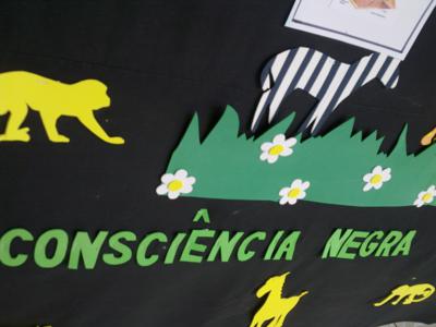 Professora Diva e atendente Vanessa montam painel sobre a Consciência Negra