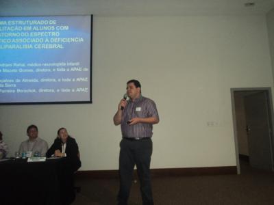 A Apae de Califórnia através do Dr. Márcio Ralal neuropediatra apresentou um trabalho desenvolvido na Escola Joana Carreira Portelinha sobre Autismo, trabalho este aclamado com louvor por todos os presentes e também pelo demais representantes da instituição Jandra Esméria Matos (assistente social), Diva Fornel (professora) e José Carlos Santiago Silva (presidente).