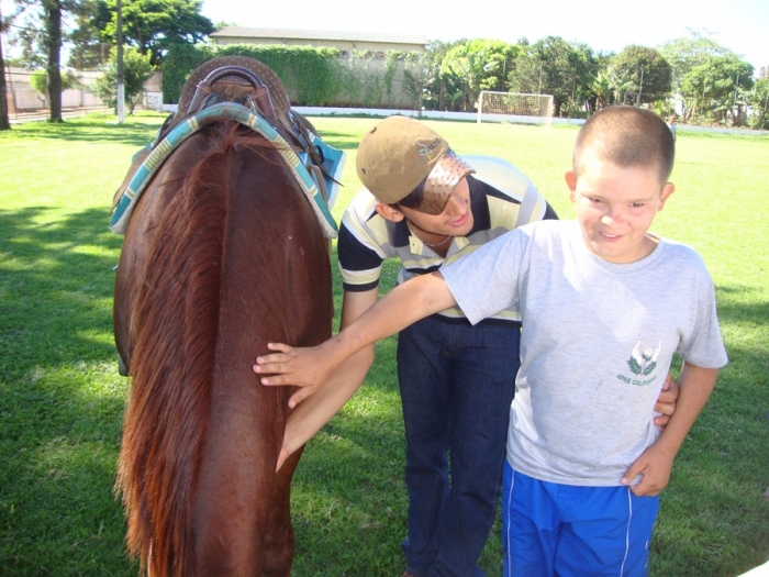 A APAE de Califórnia conta agora com um trabalho complementar de Equoterapia. Essa técnica utiliza o cavalo como recurso terapêutico, ou seja, como instrumento de trabalho.