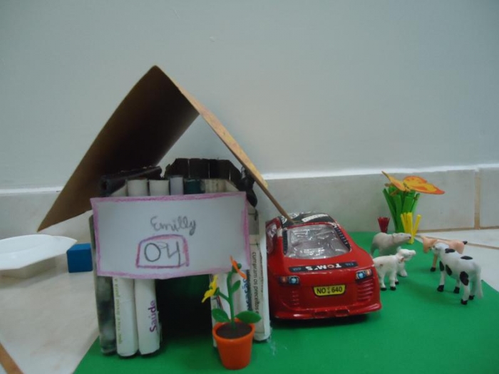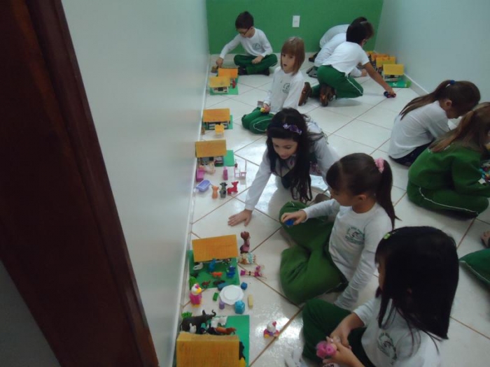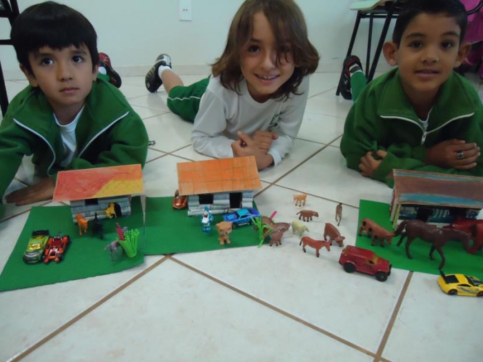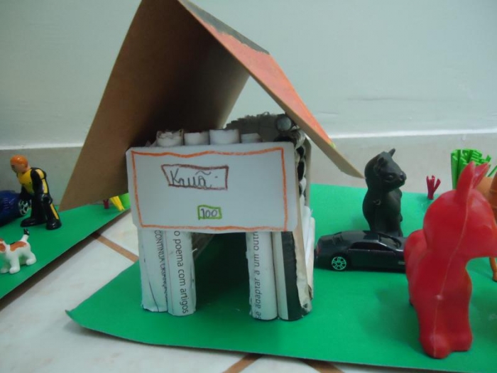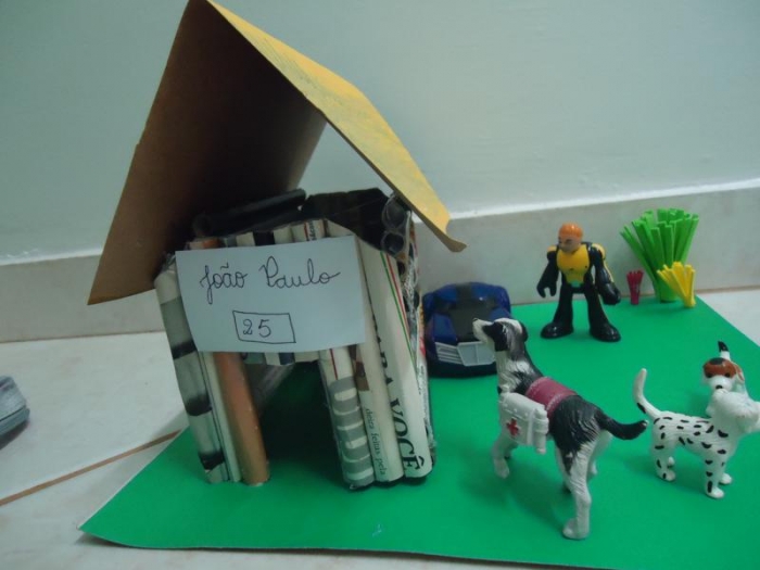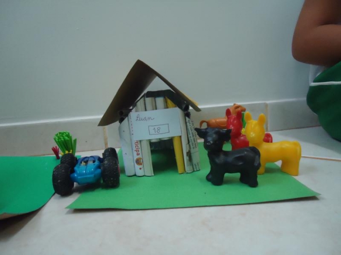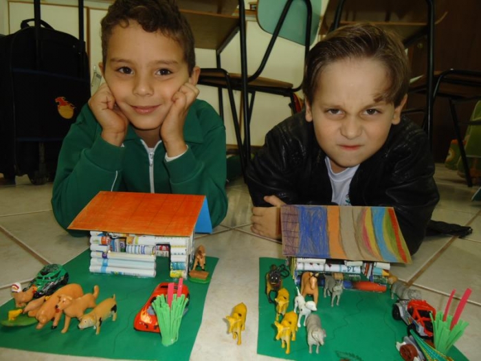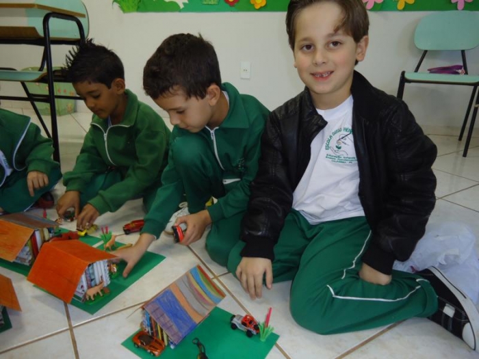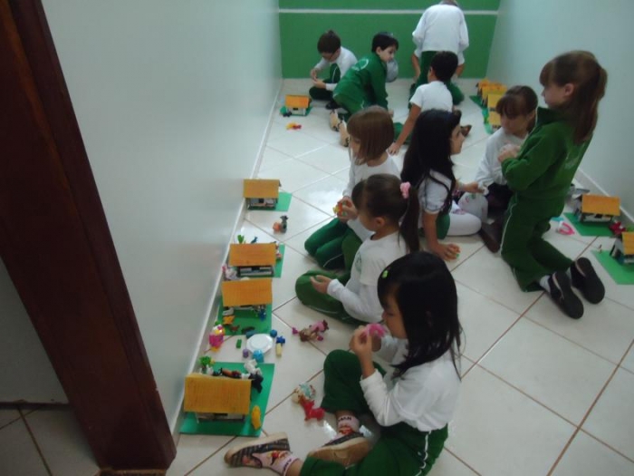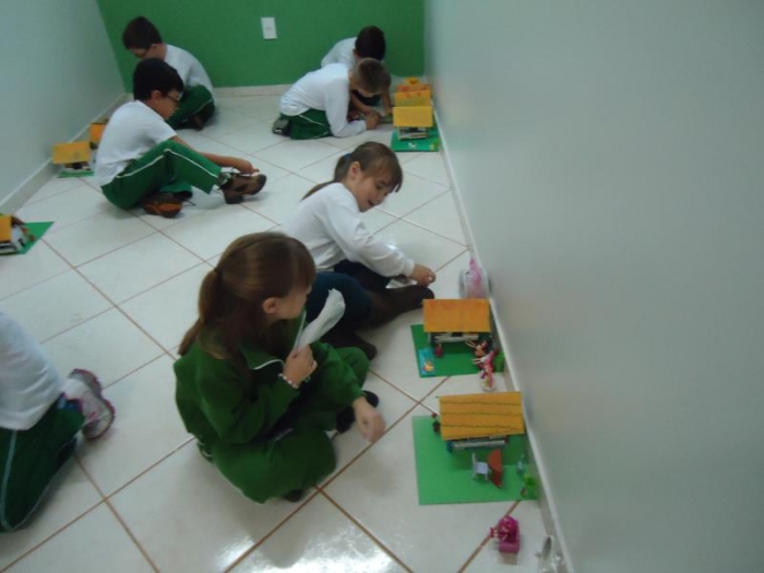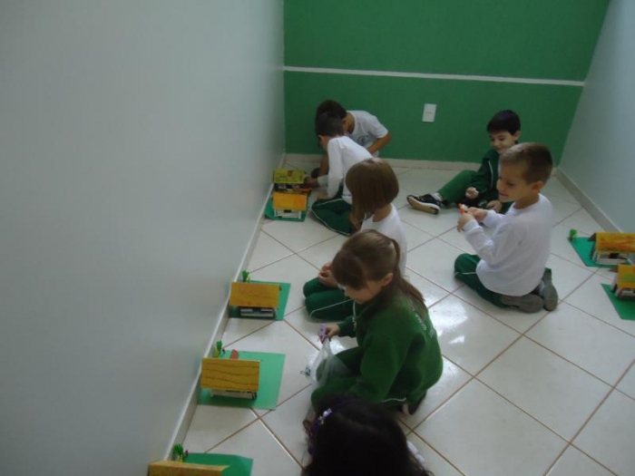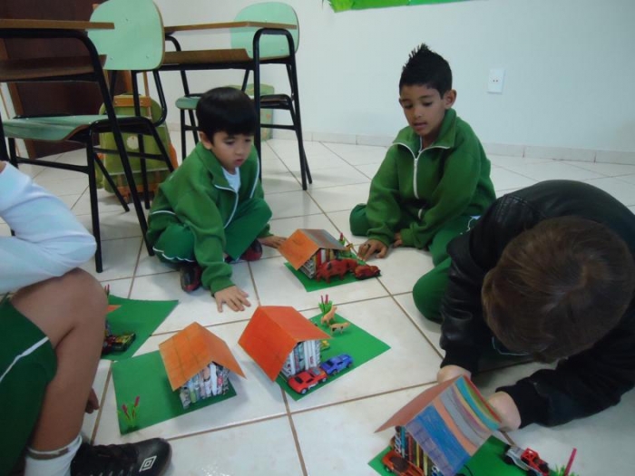 Prof. Sabrina e Rosana propõem aula de Geografia construindo casinhas.