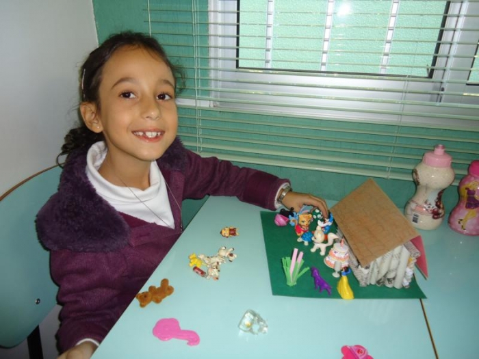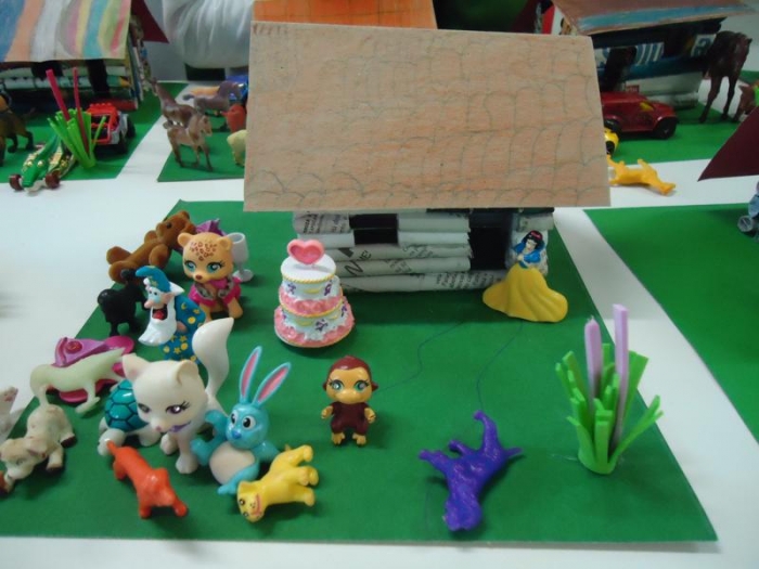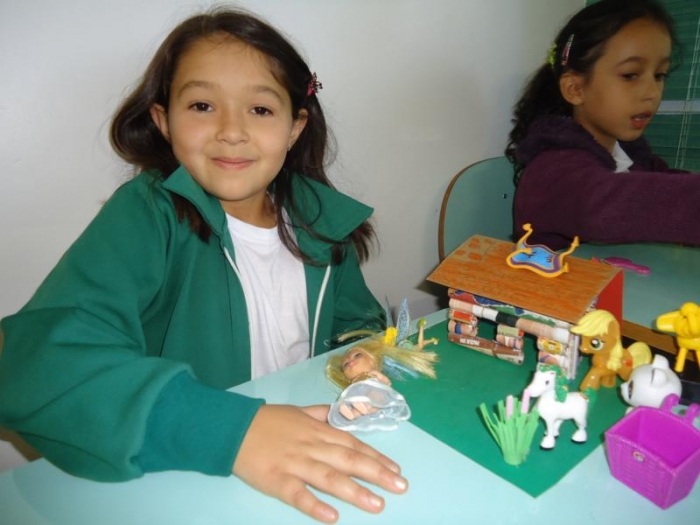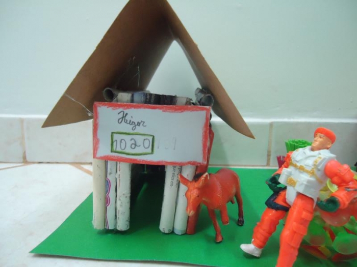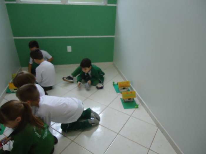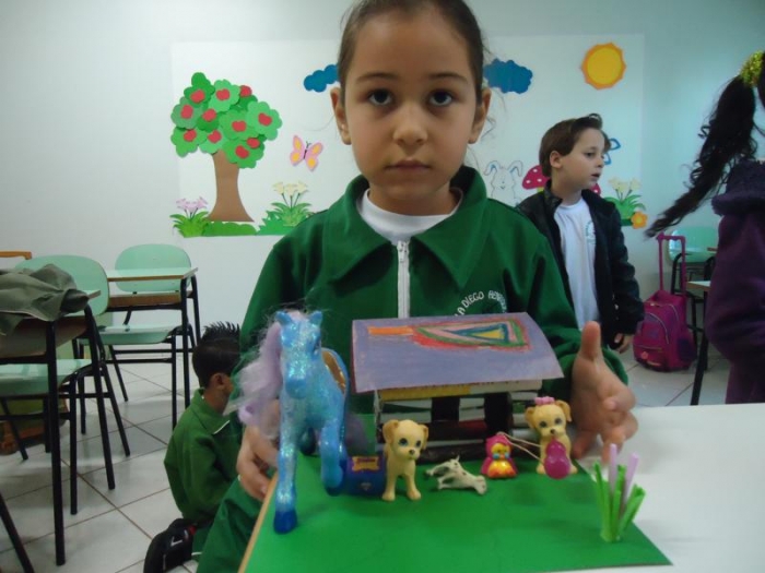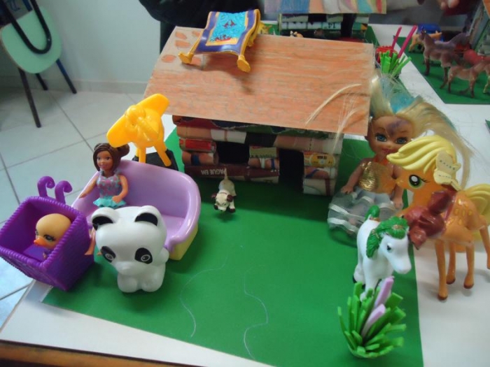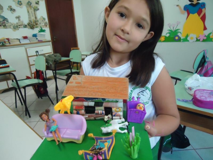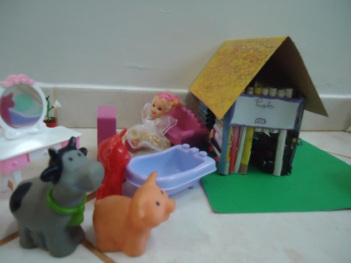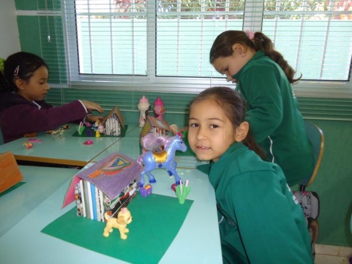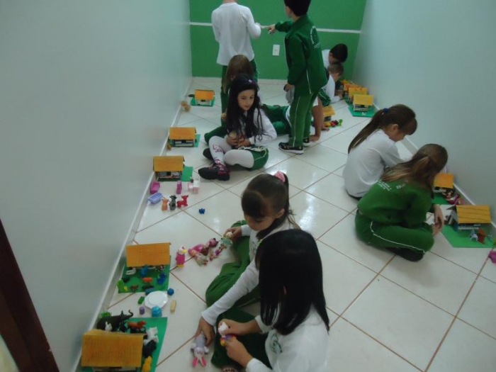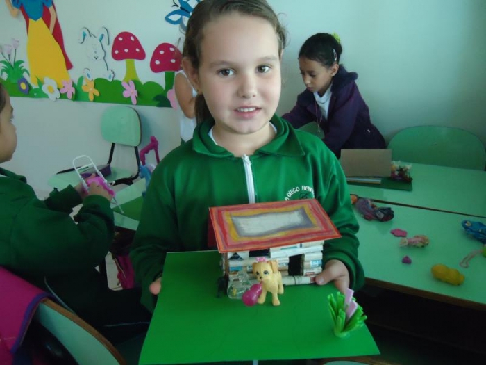 Prof. Sabrina e Rosana propõem aula de Geografia construindo casinhas.