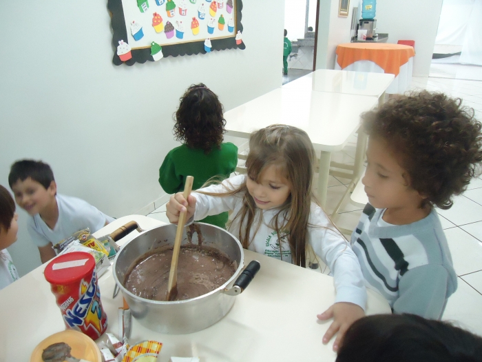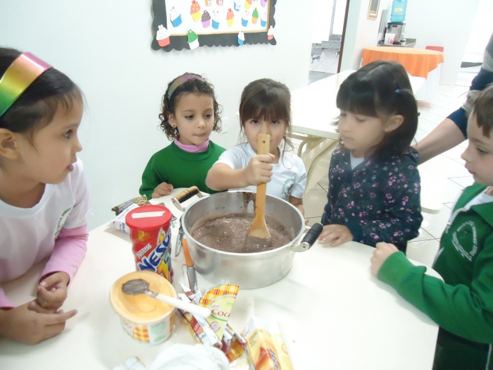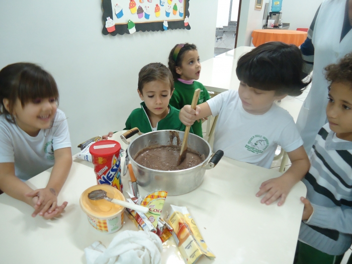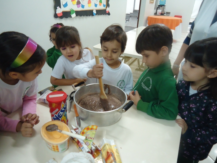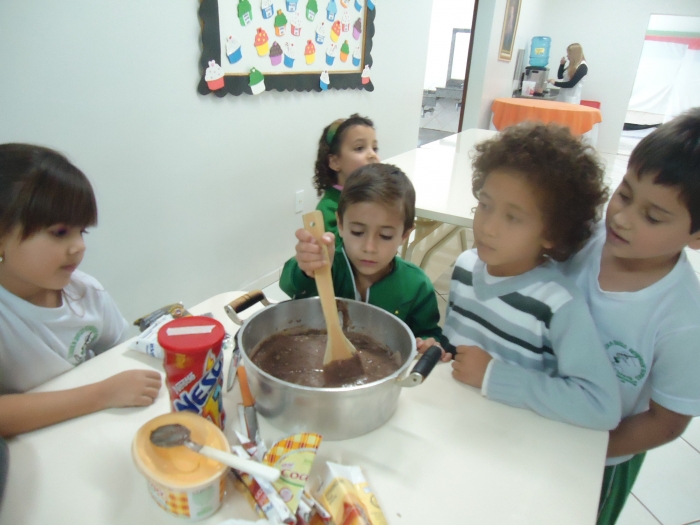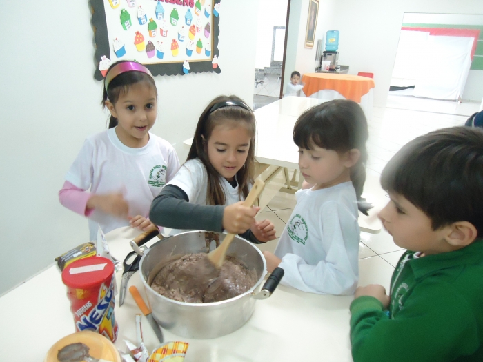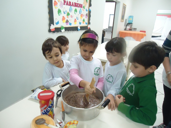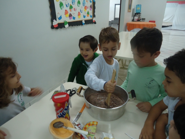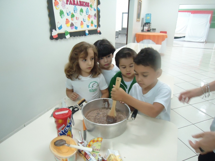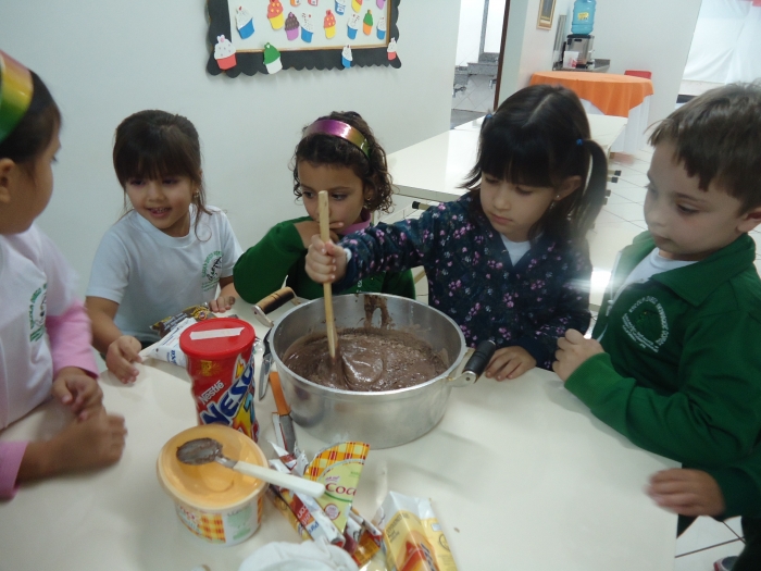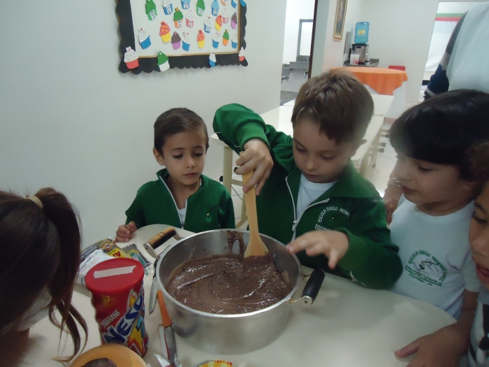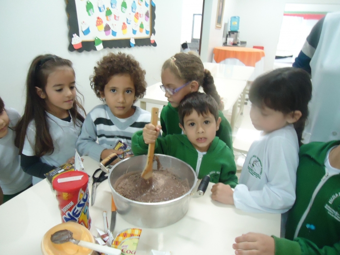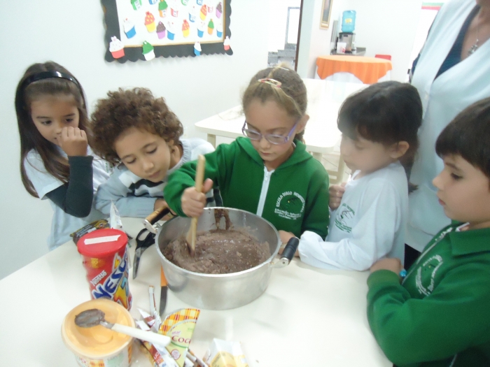 Alunos do Pré III A e B fazem brigadeiro para o Dia Das Mães.