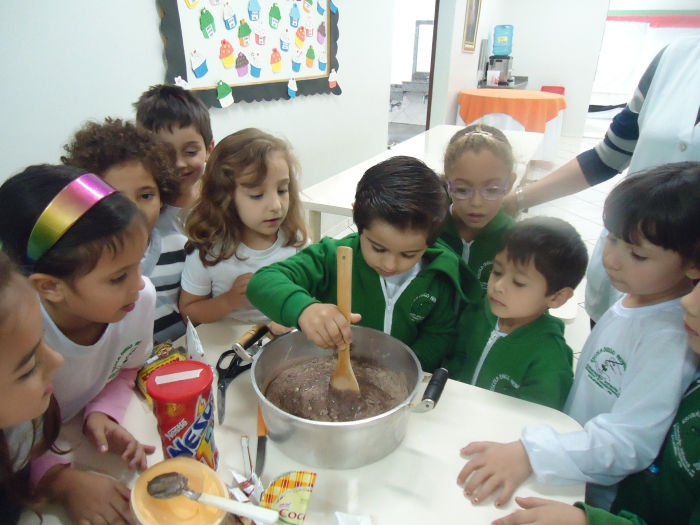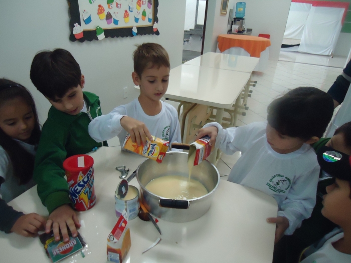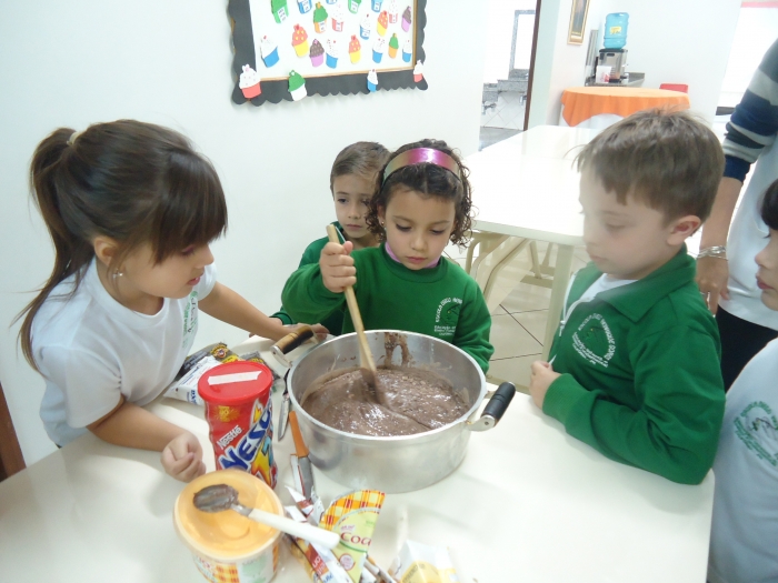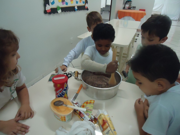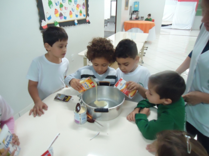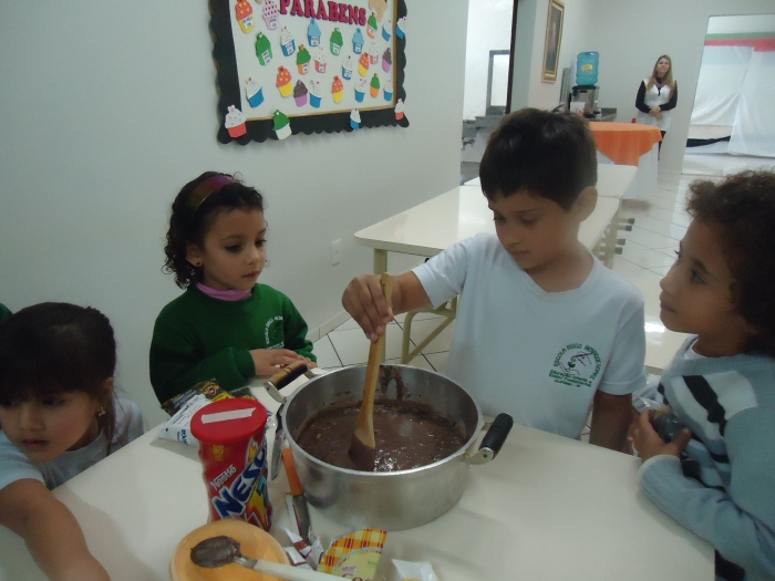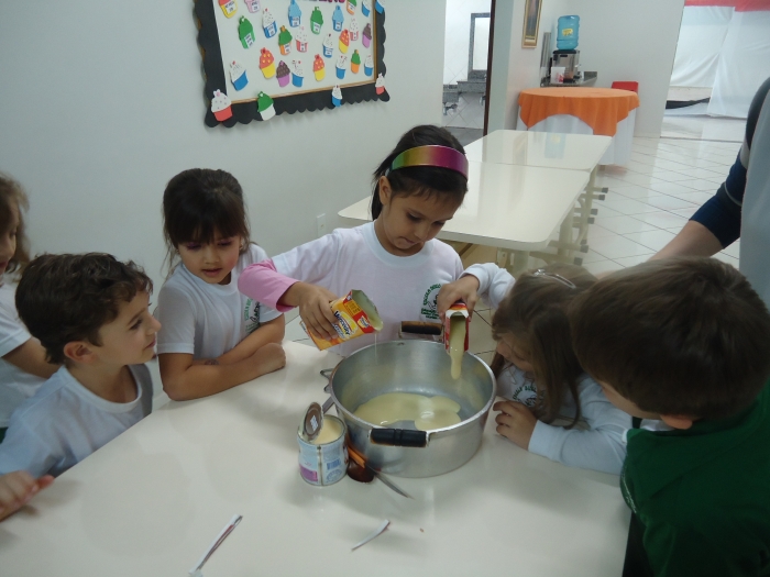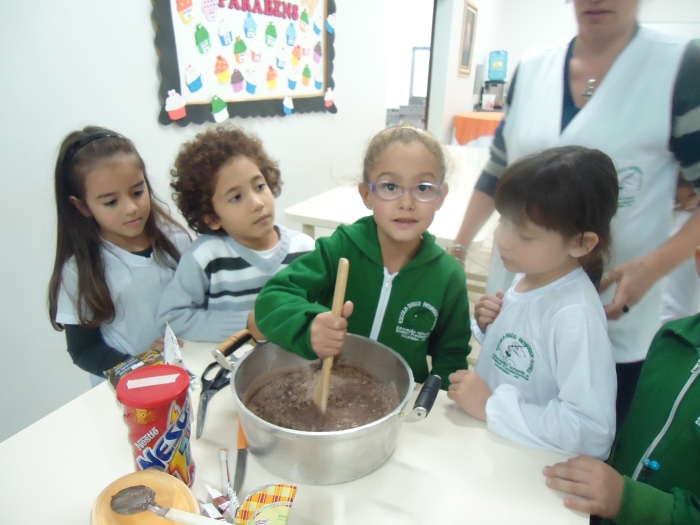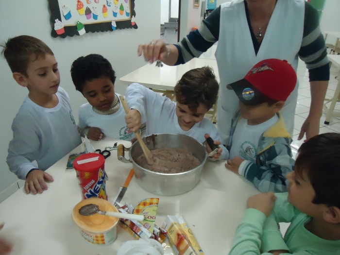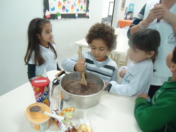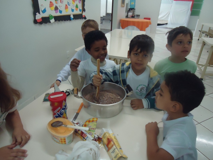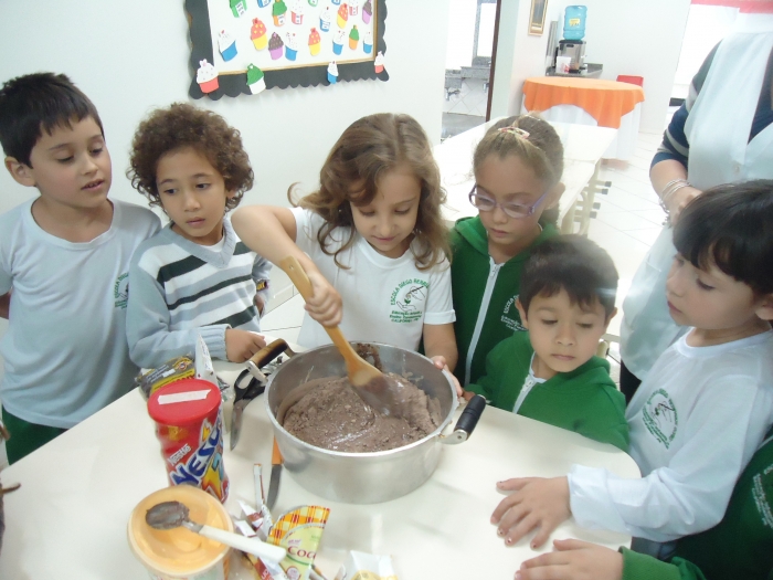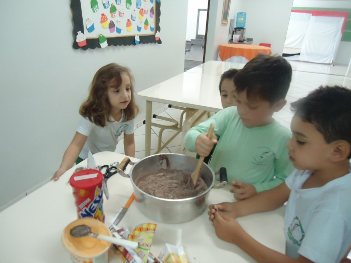 Alunos do Pré III A e B fazem brigadeiro para o Dia Das Mães.