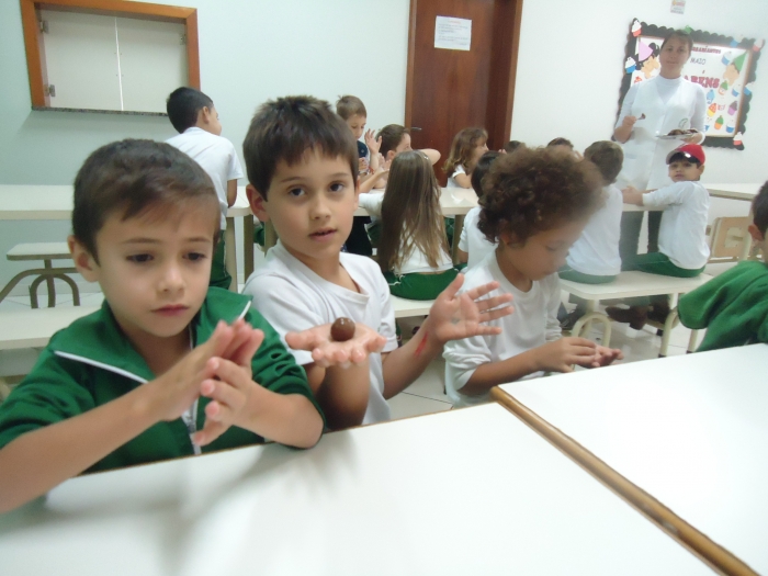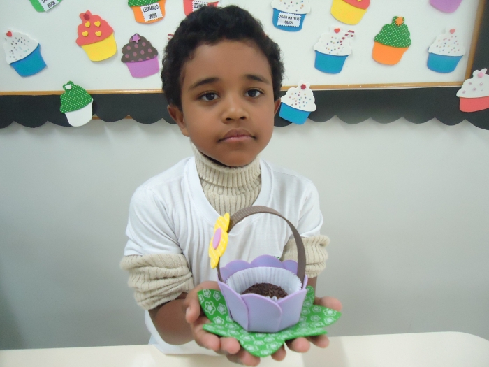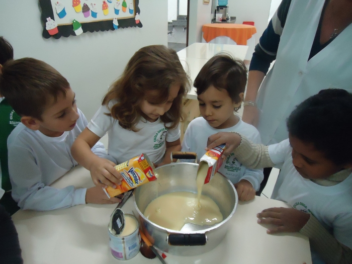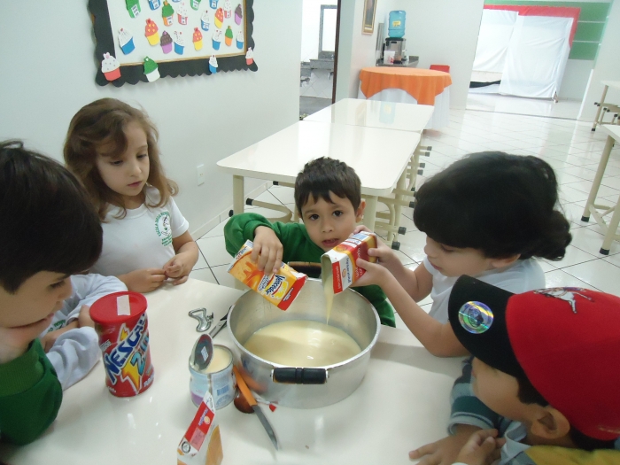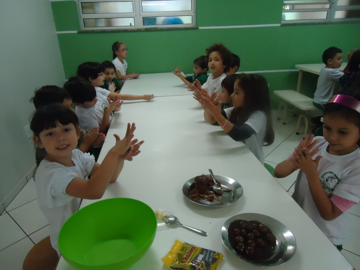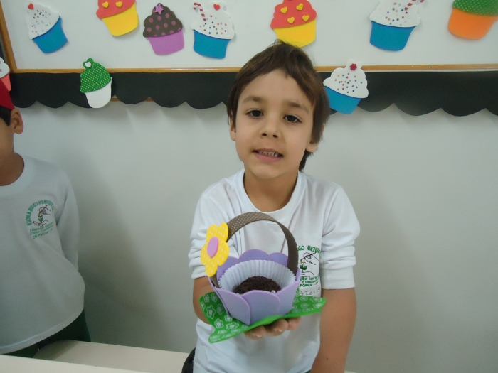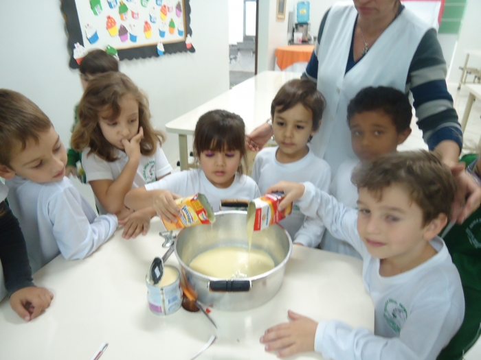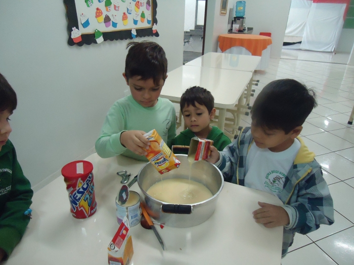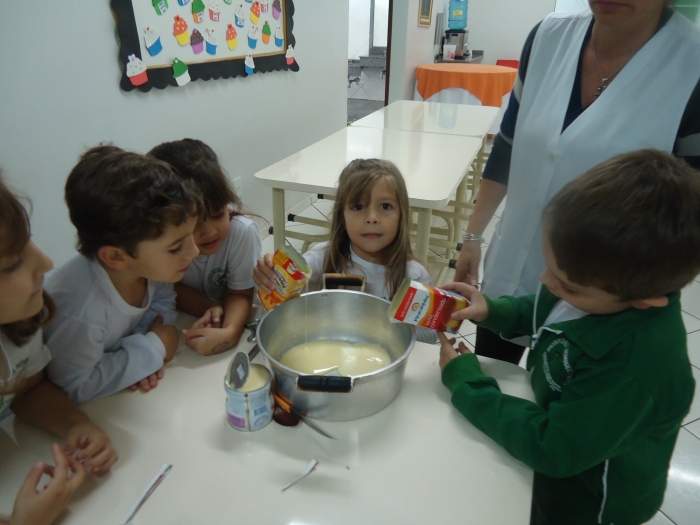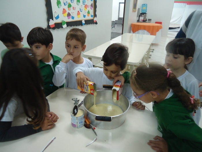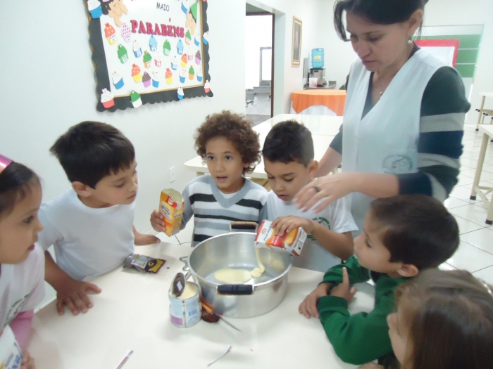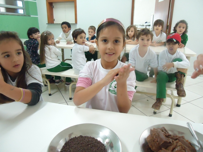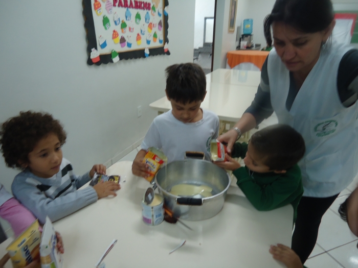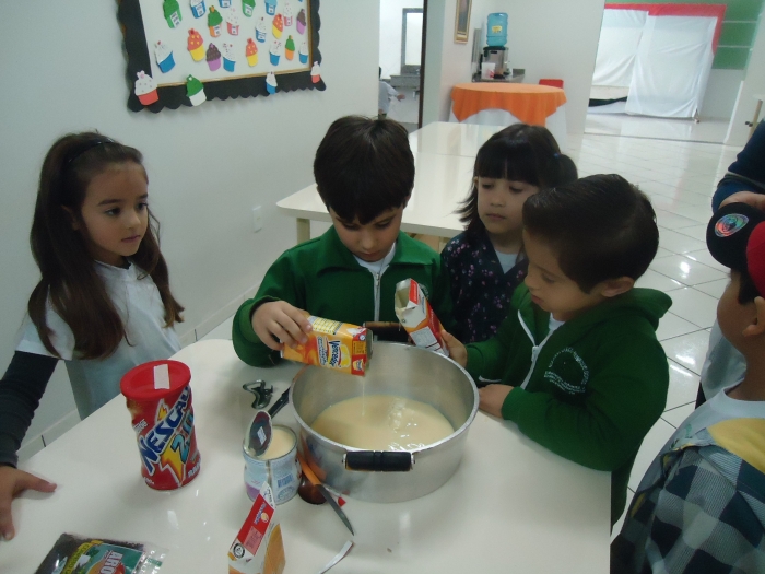Alunos do Pré III A e B fazem brigadeiro para o Dia Das Mães.