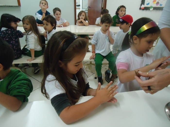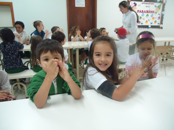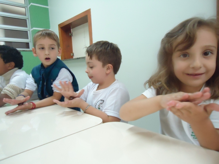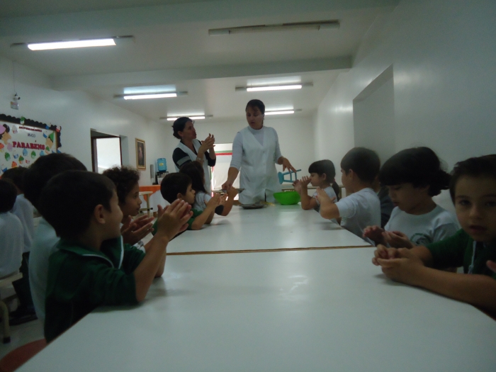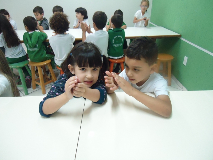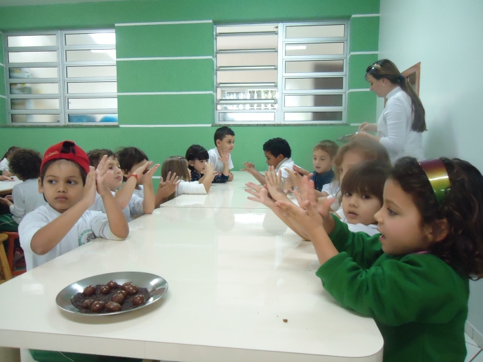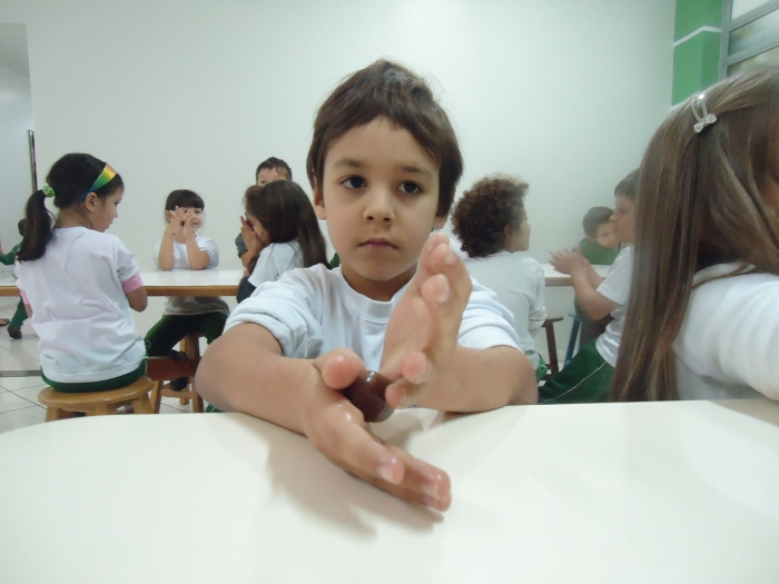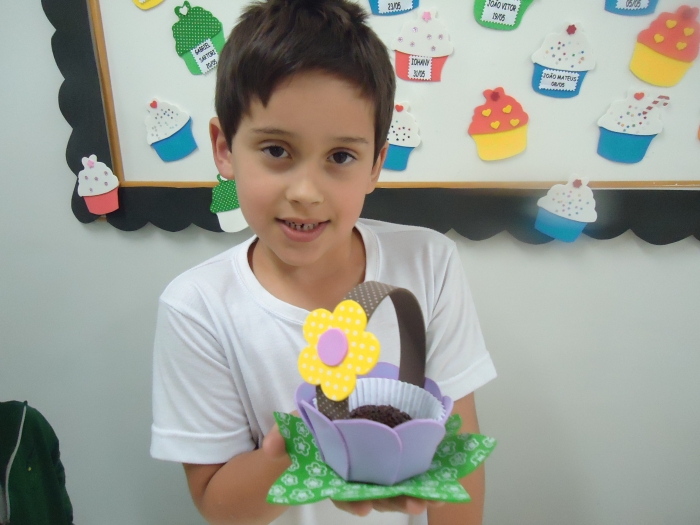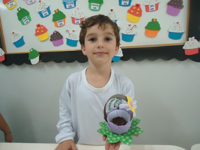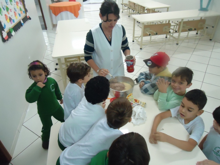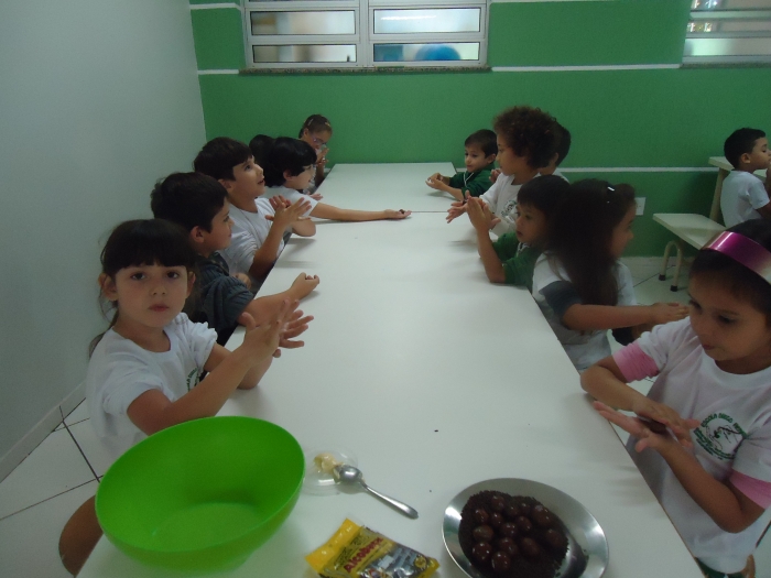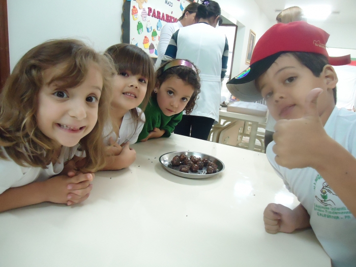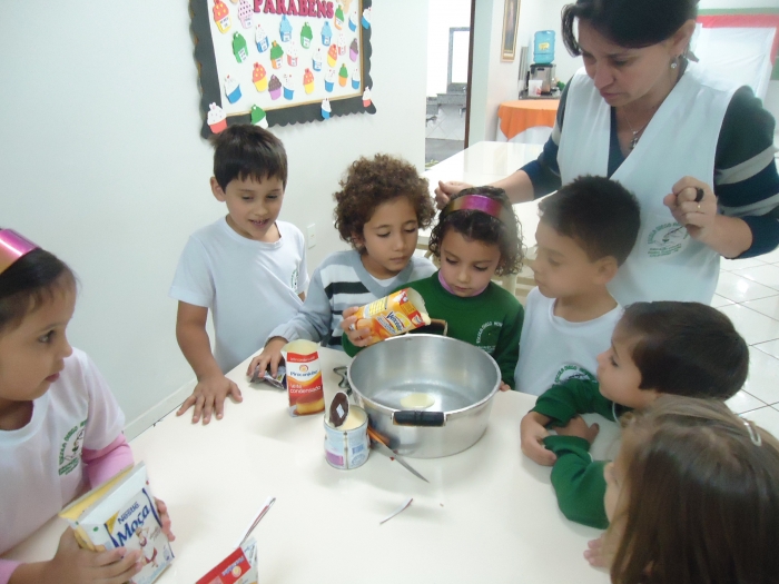 Alunos do Pré III A e B fazem brigadeiro para o Dia Das Mães.
