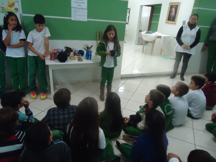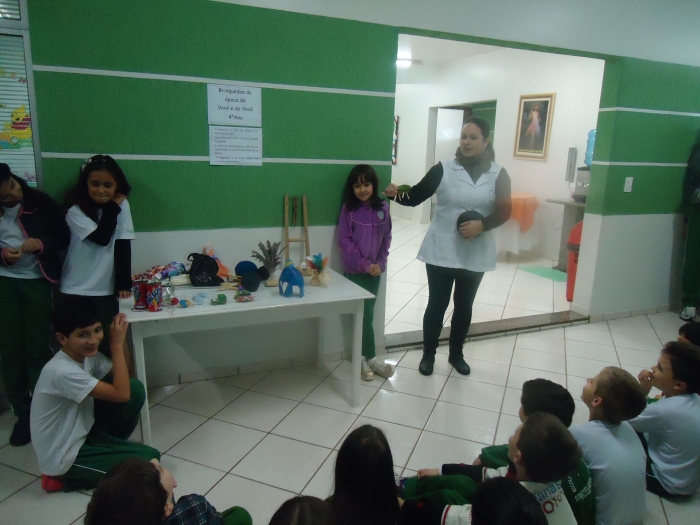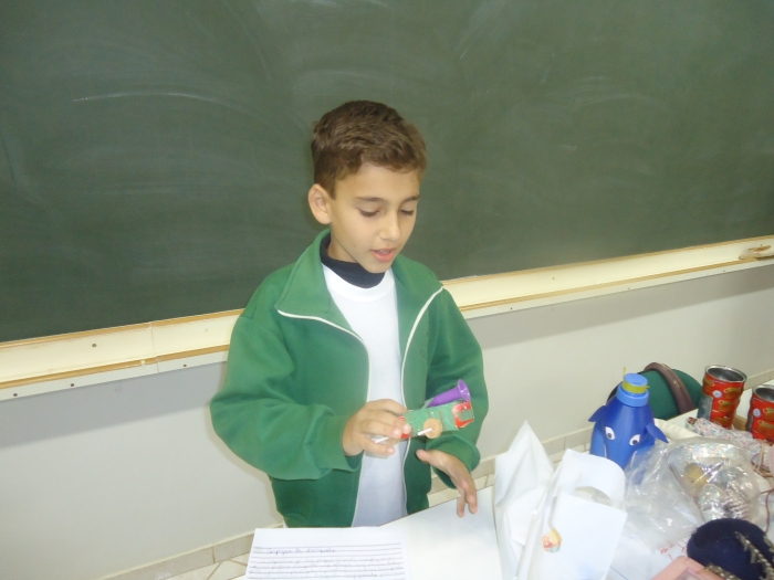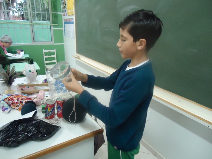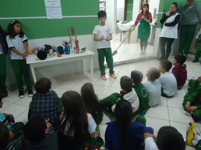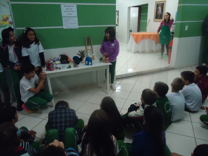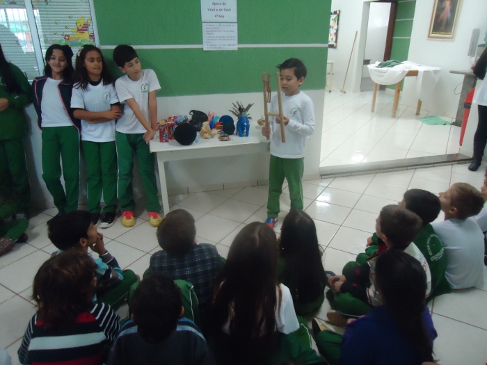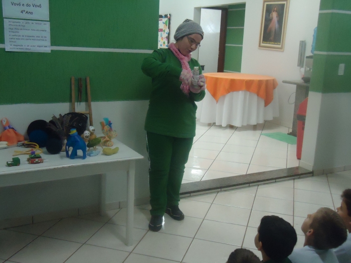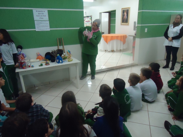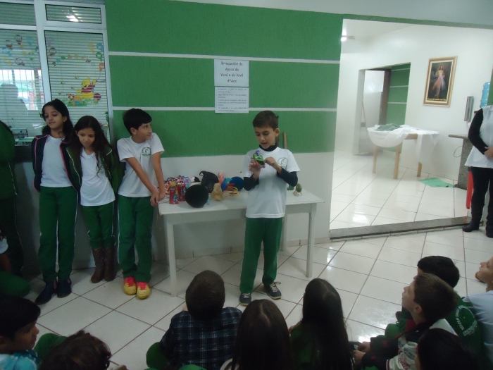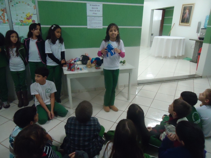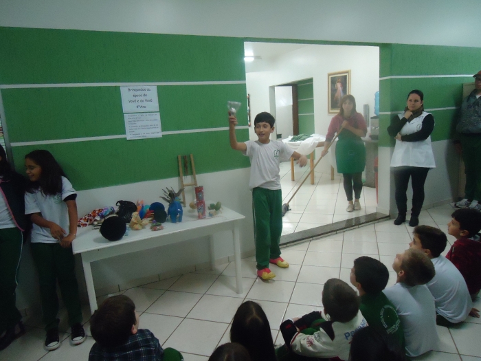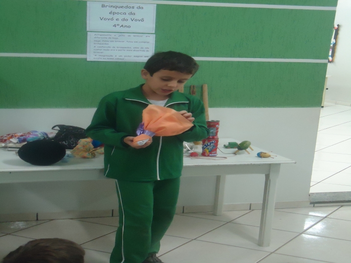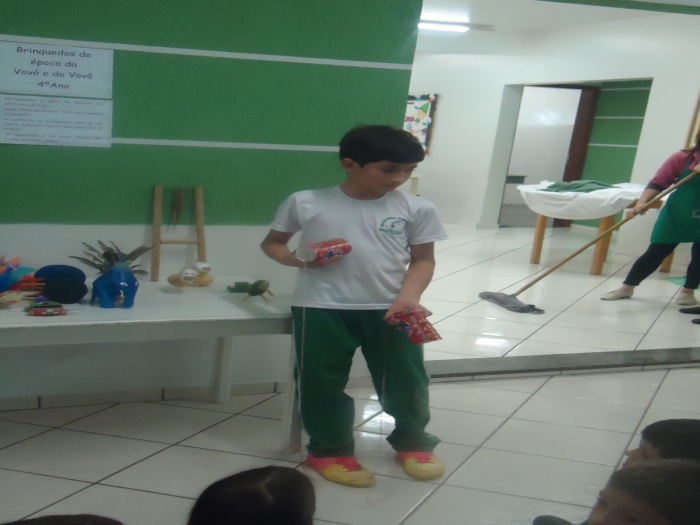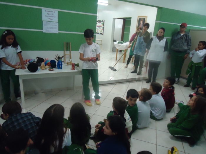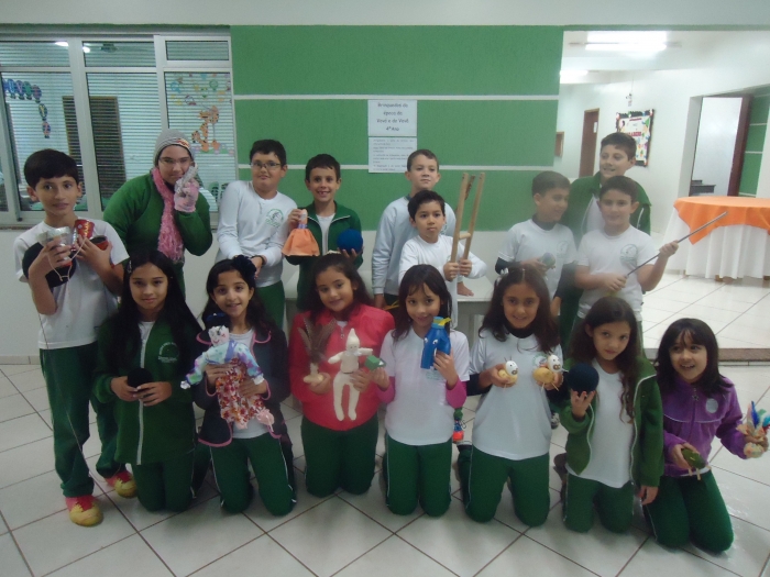 Os alunos do 4º Ano confeccionaram brinquedos que a Vovó e o Vovô brincavam na Infância.