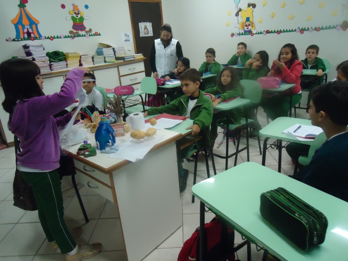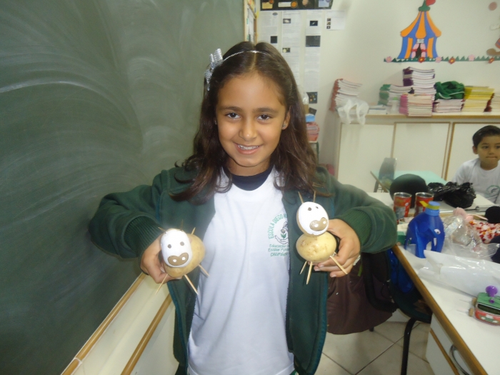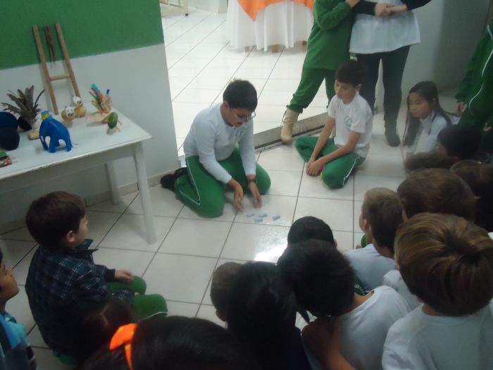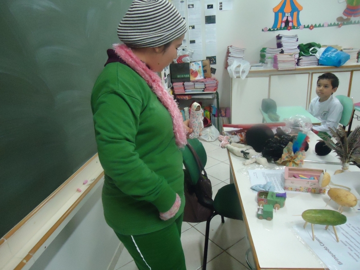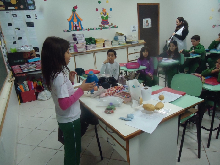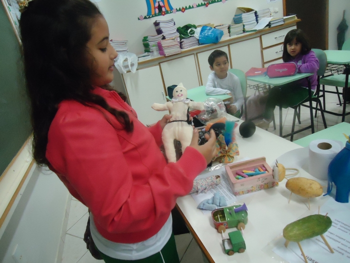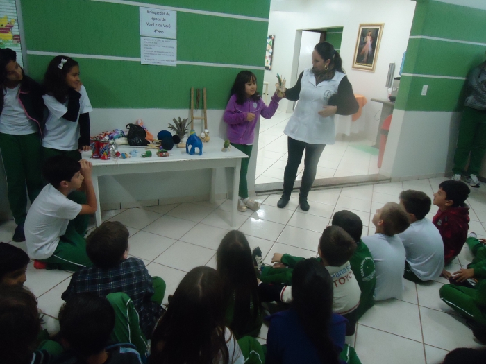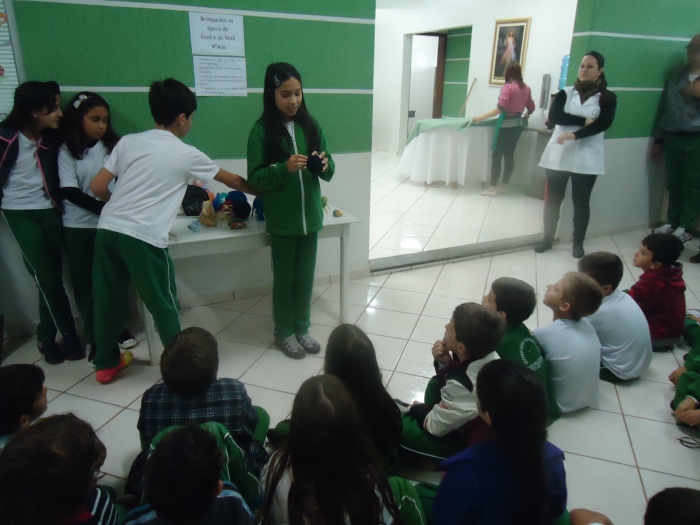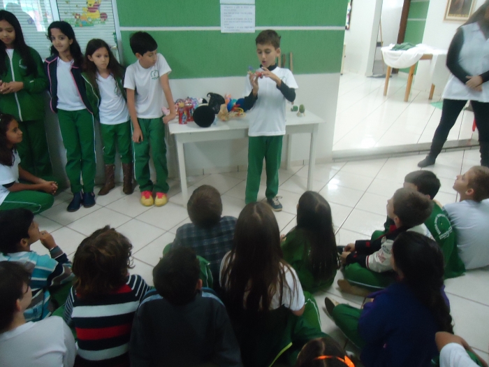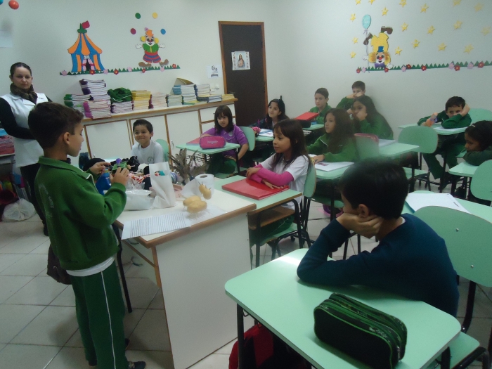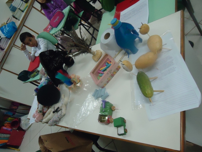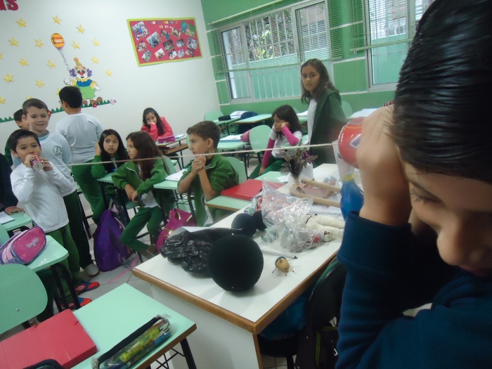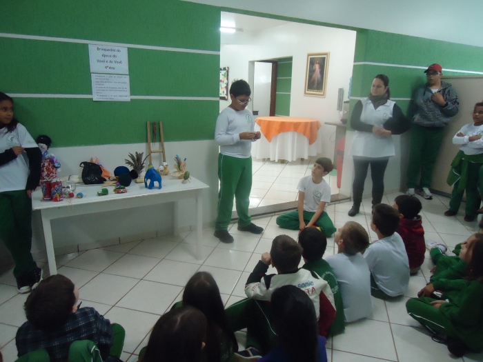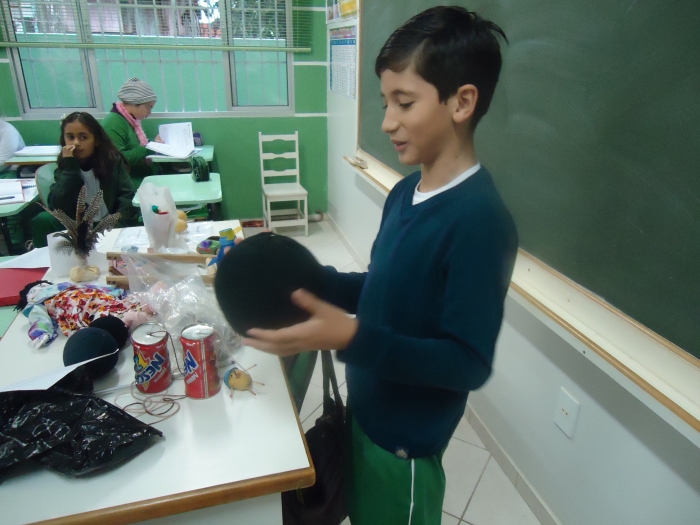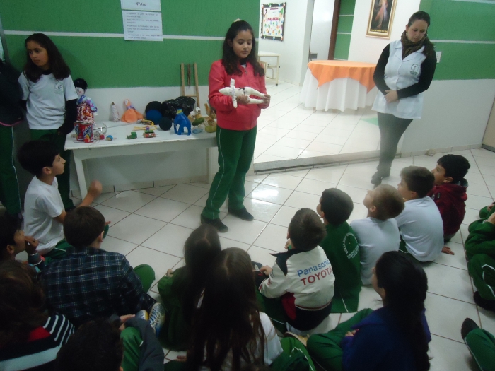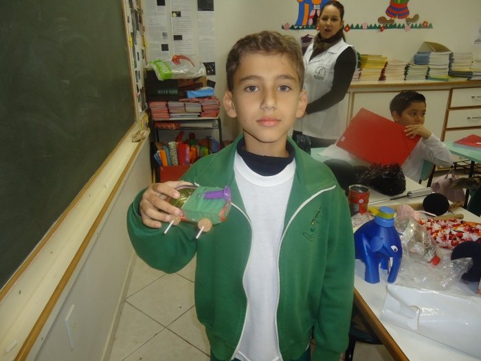 Os alunos do 4º Ano confeccionaram brinquedos que a Vovó e o Vovô brincavam na Infância.