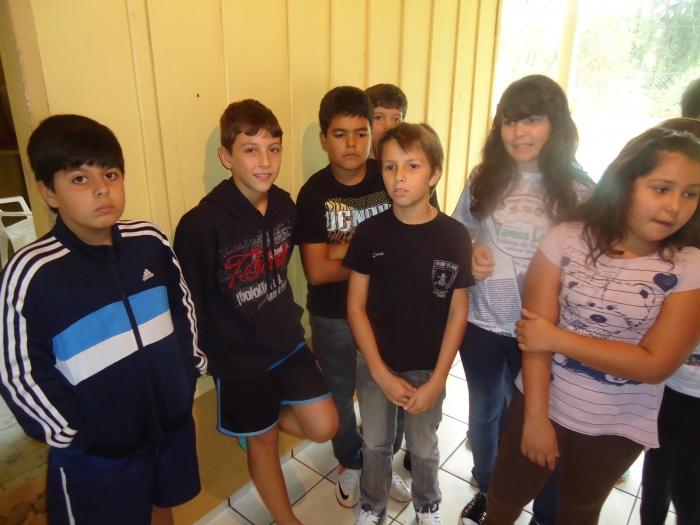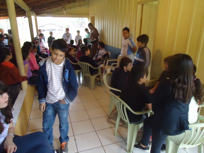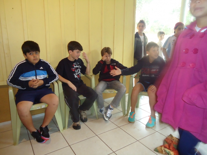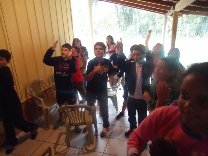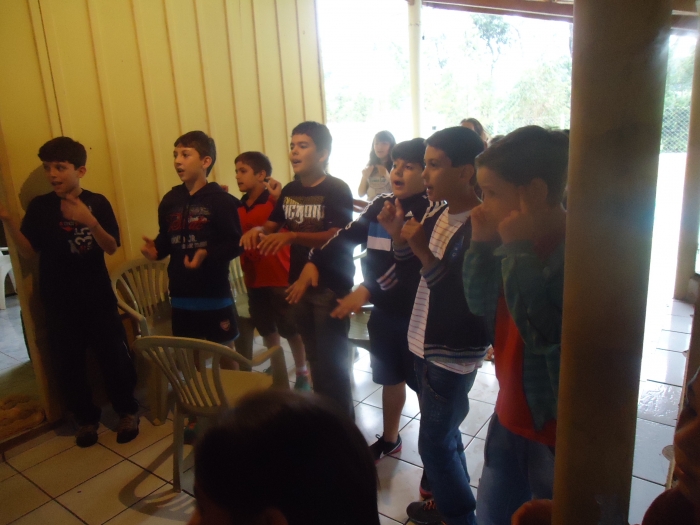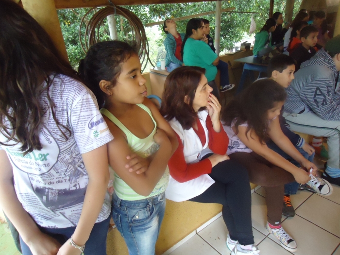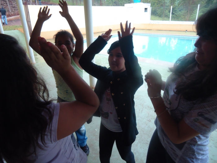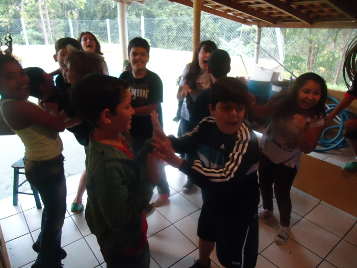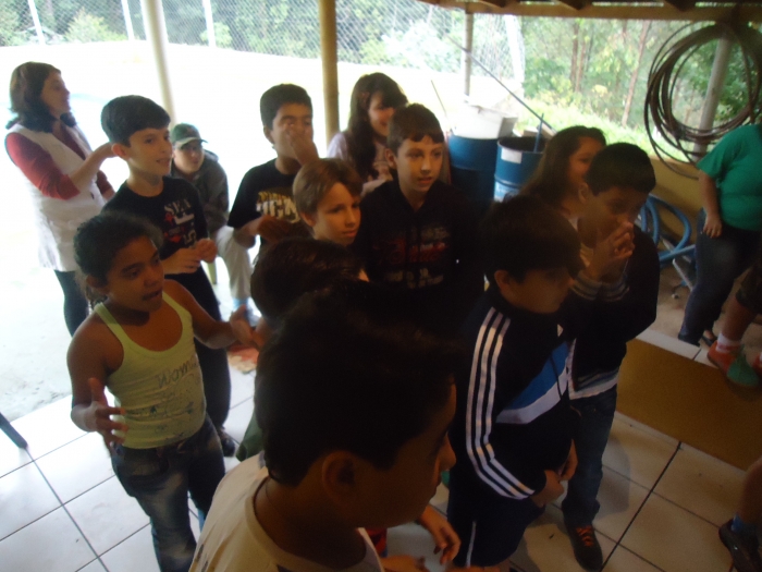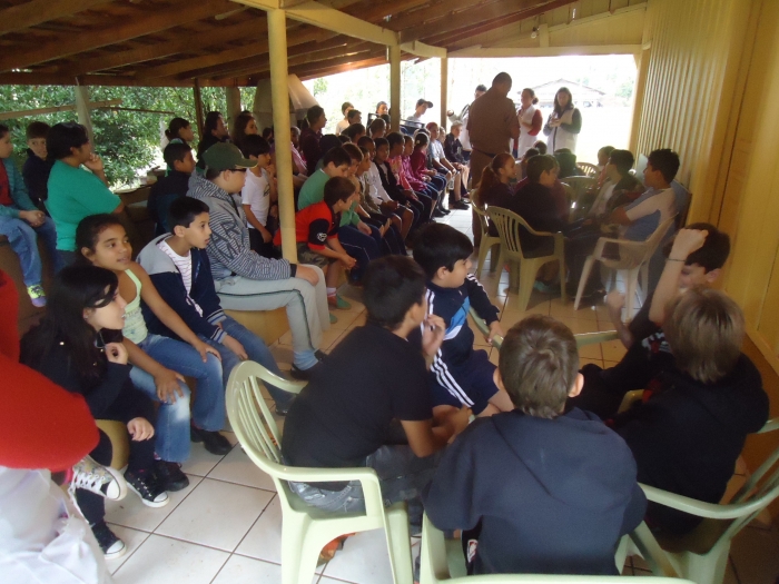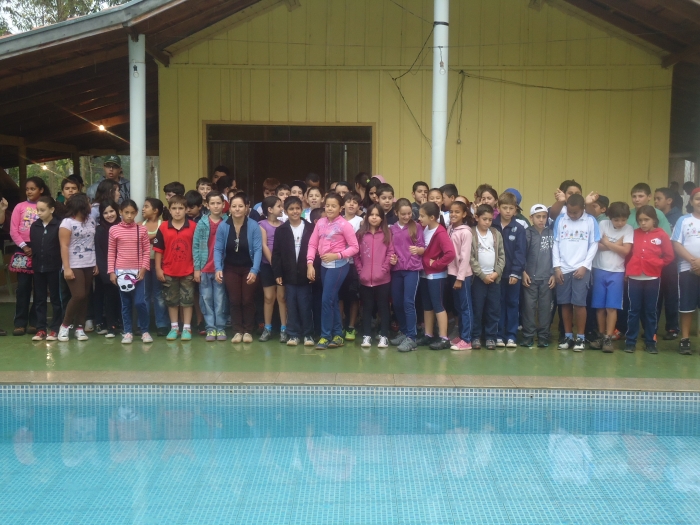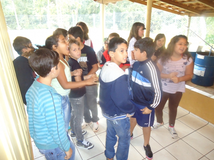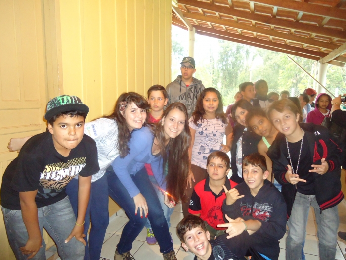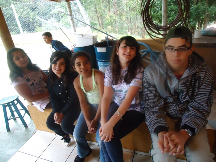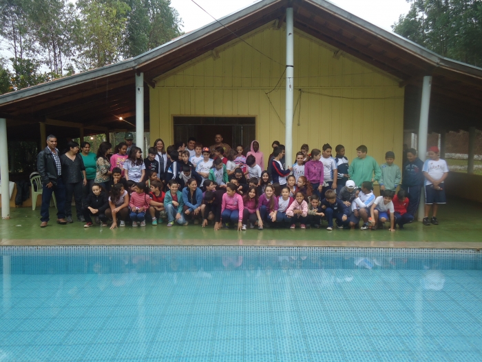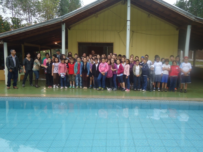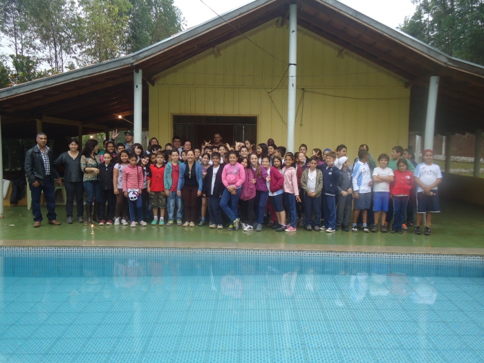 Alunos confraternizam em uma chácara.