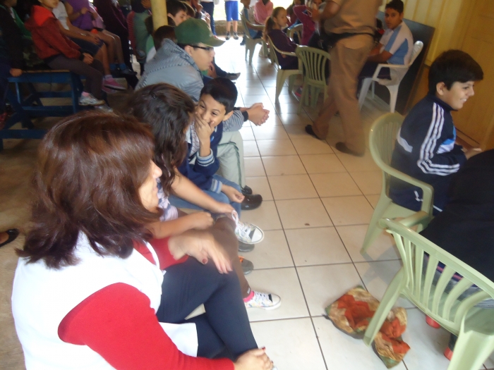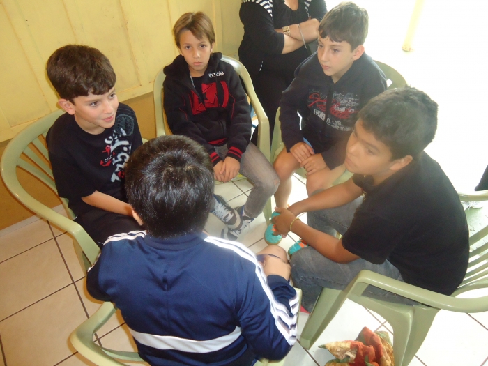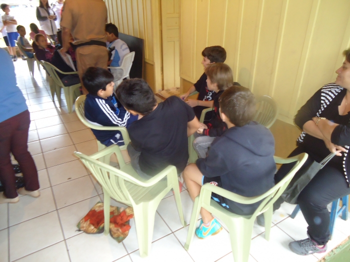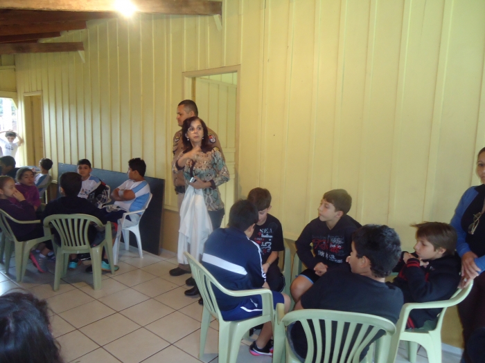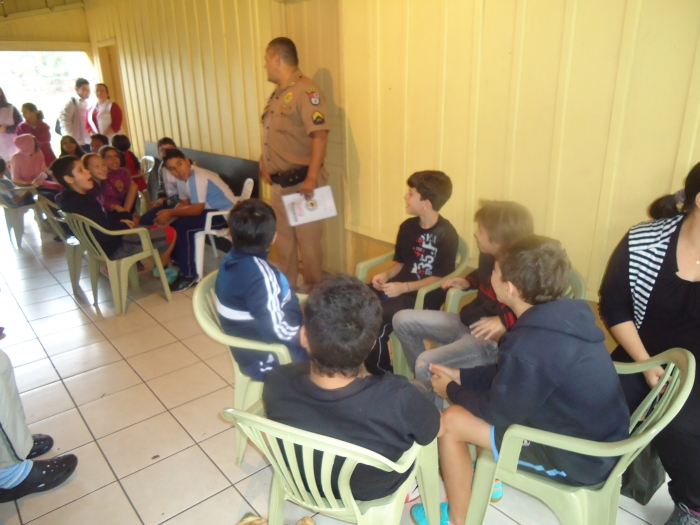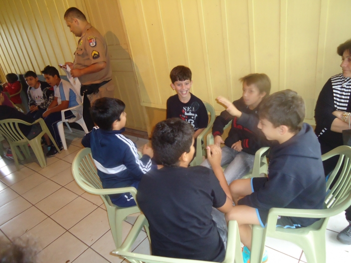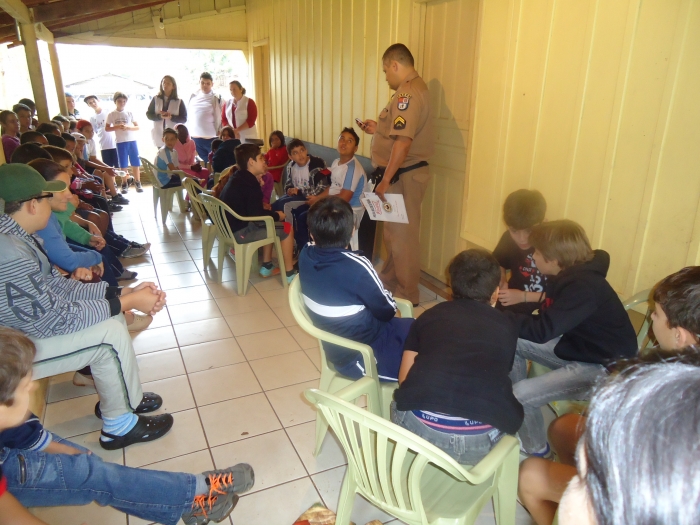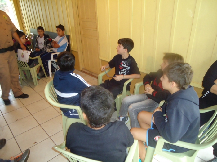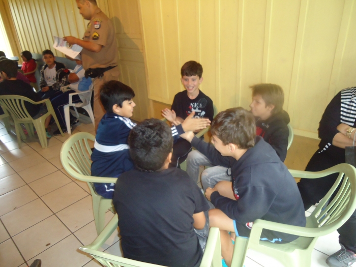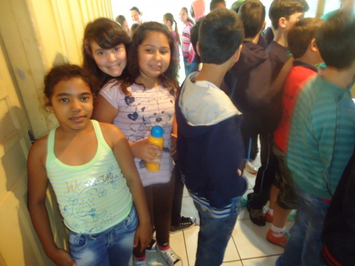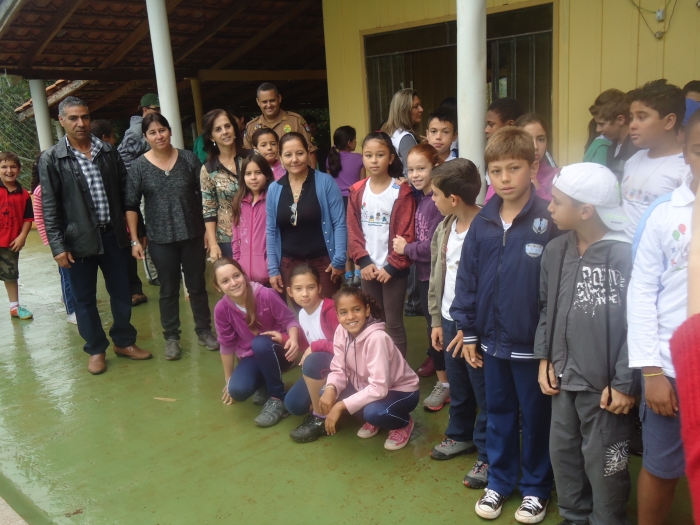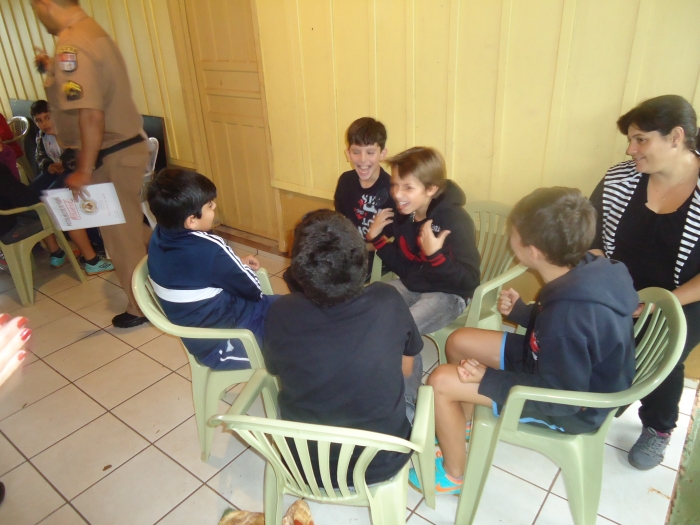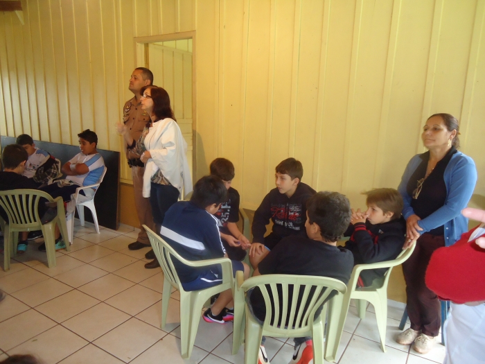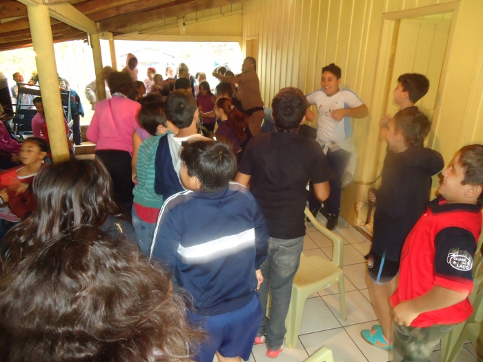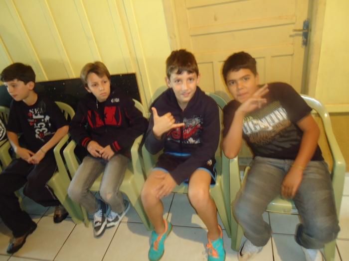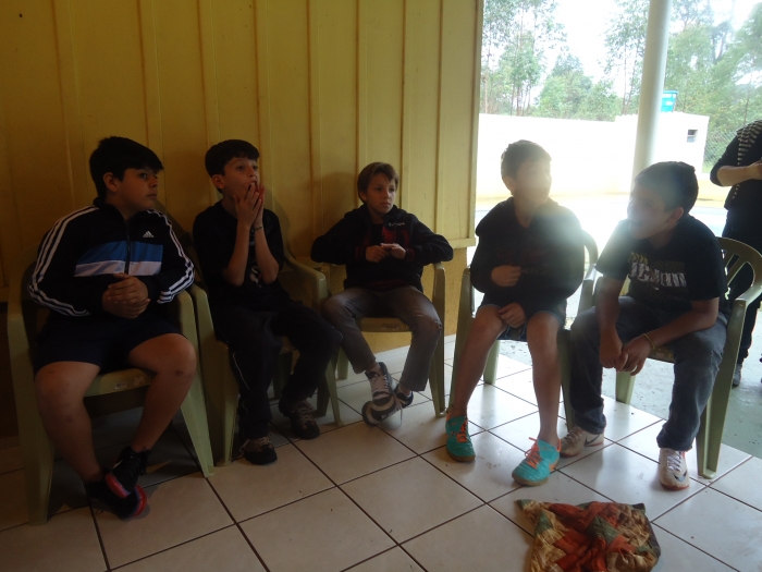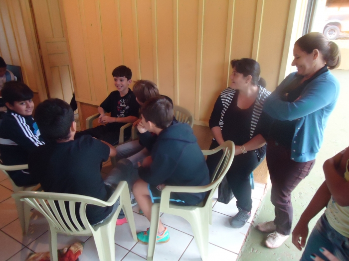 Alunos confraternizam em uma chácara.