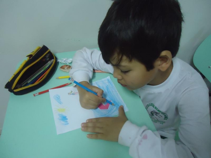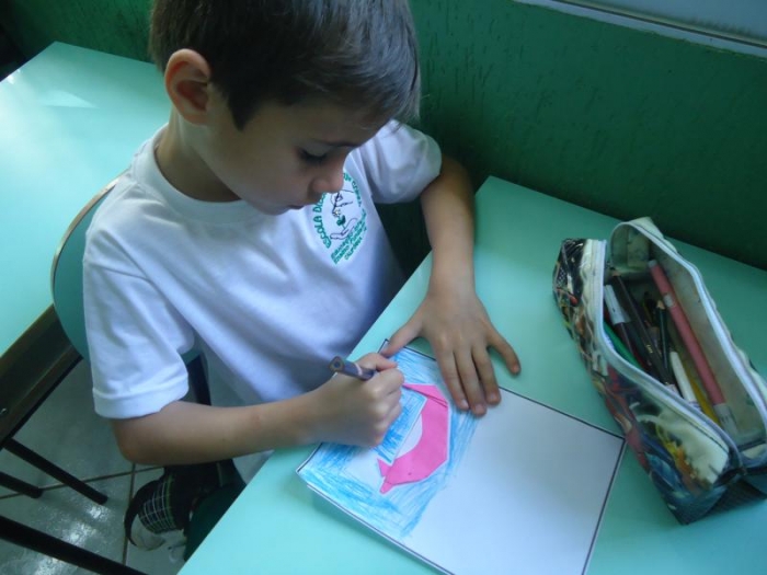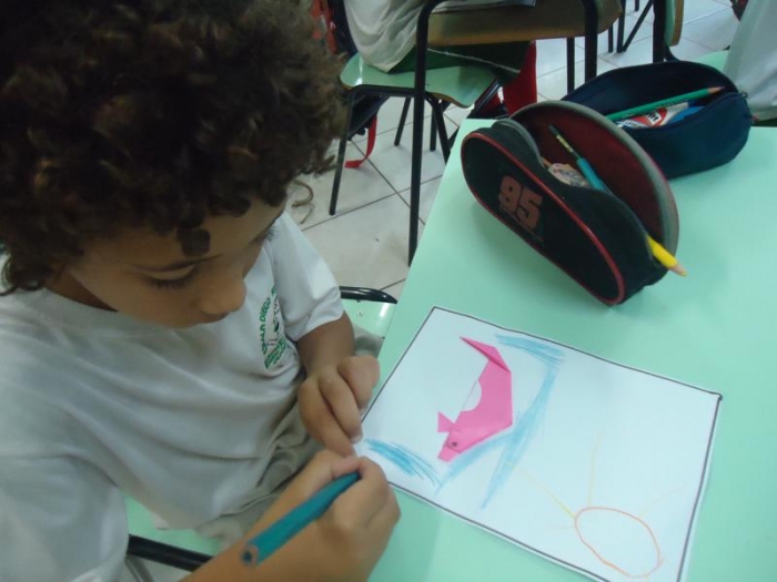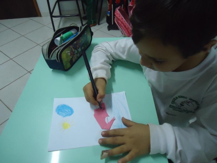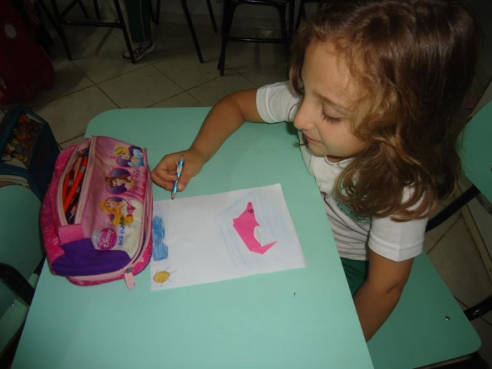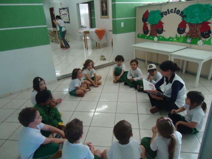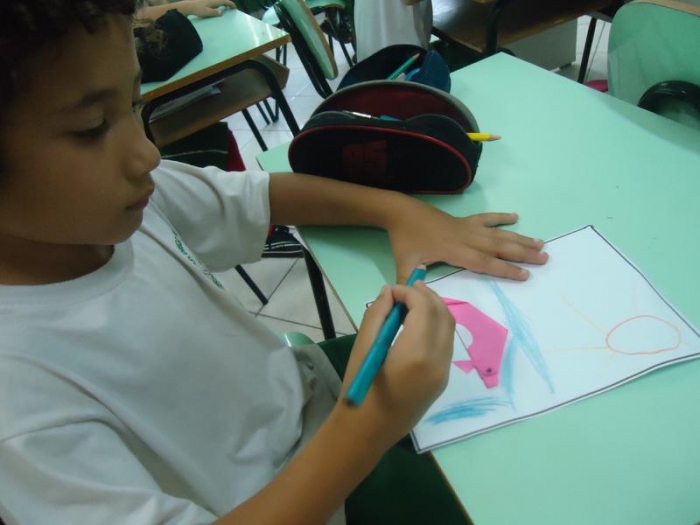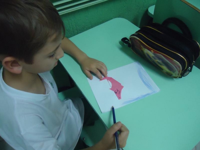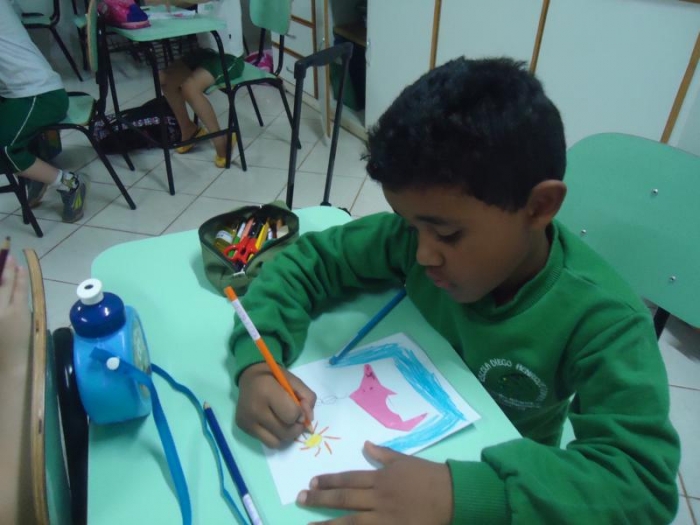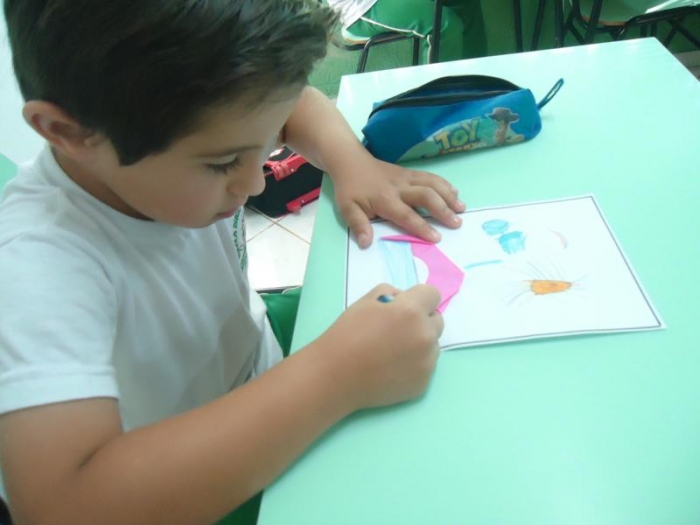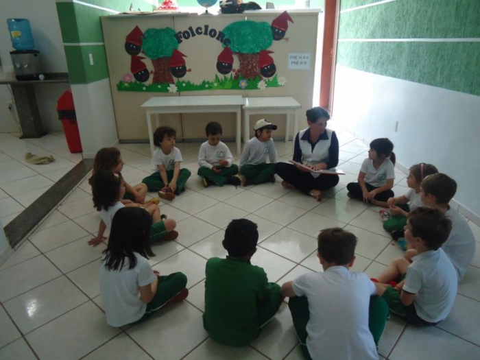 Alunos do Pré III A e Pré III B, realizando atividades do Folclore