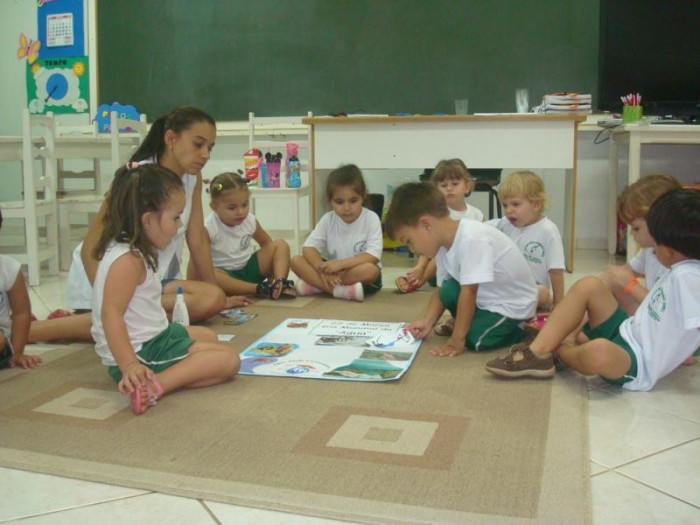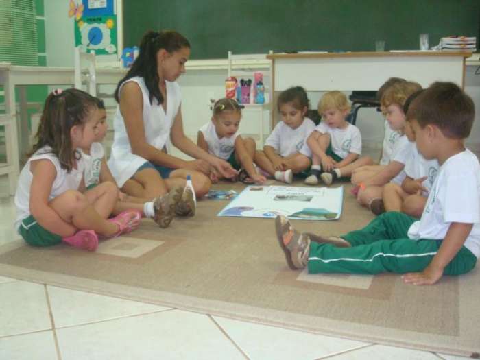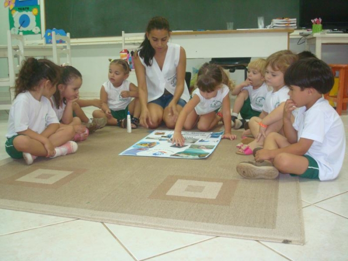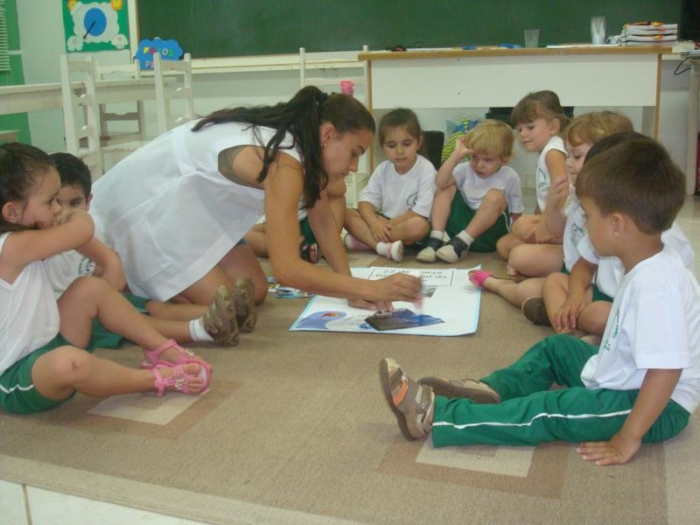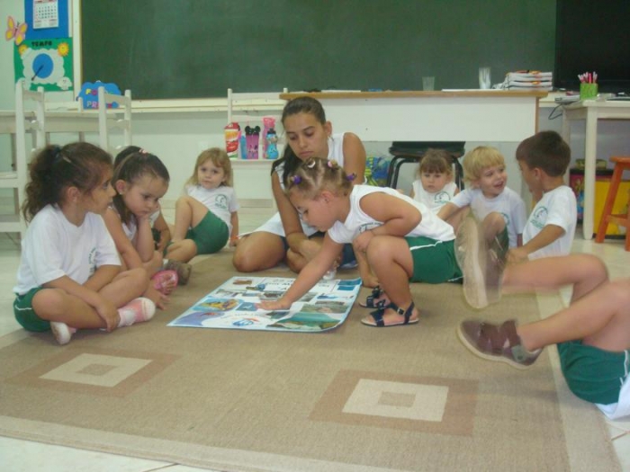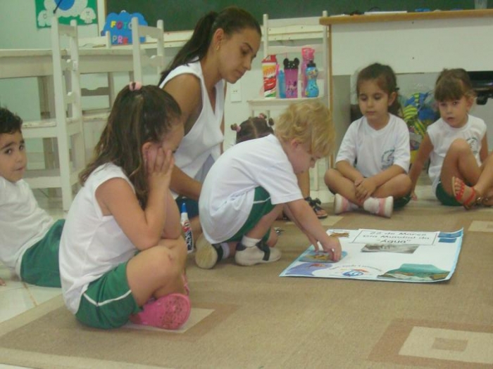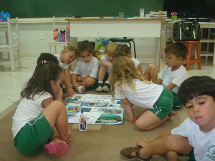 Alunos do Pré I discutindo o tema: Água.