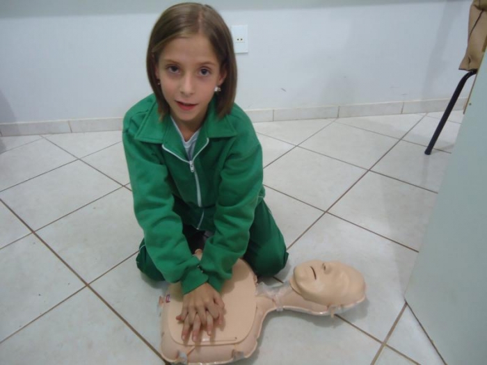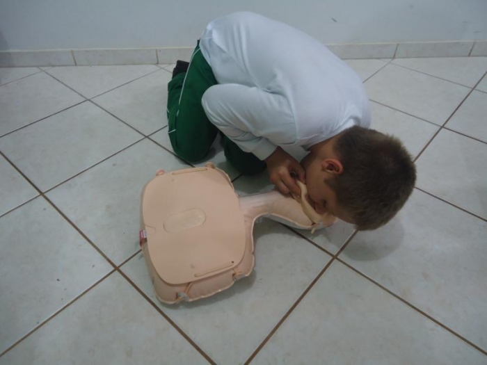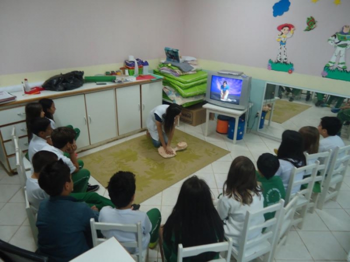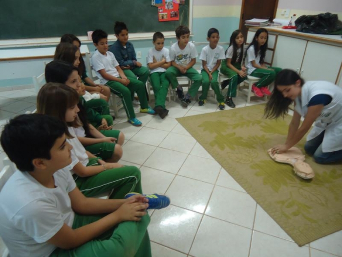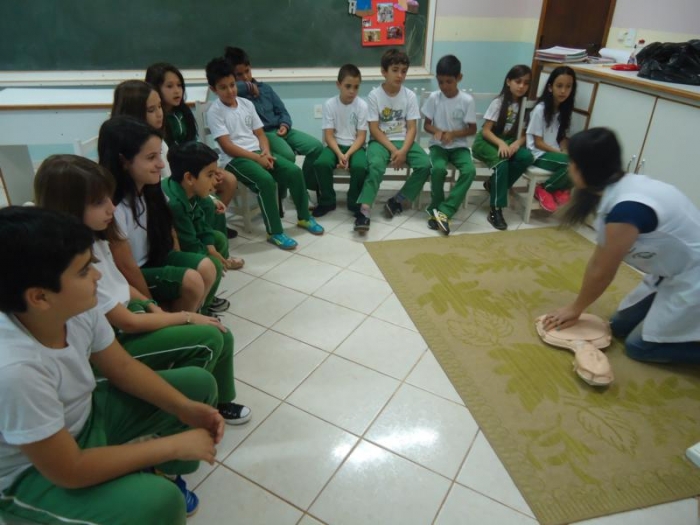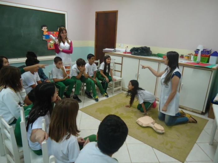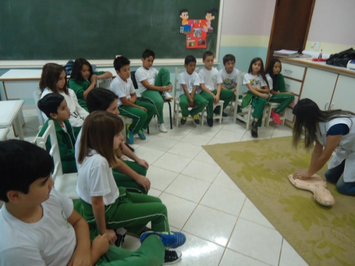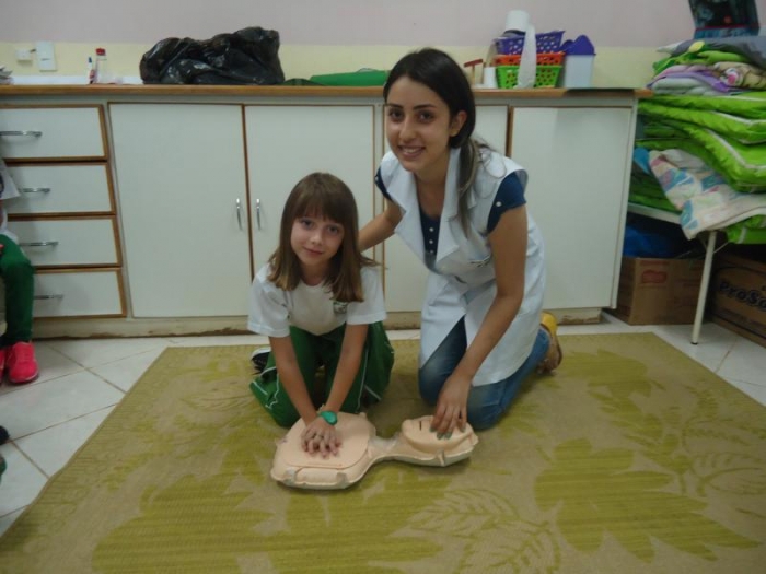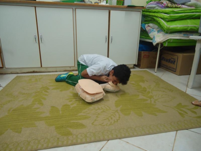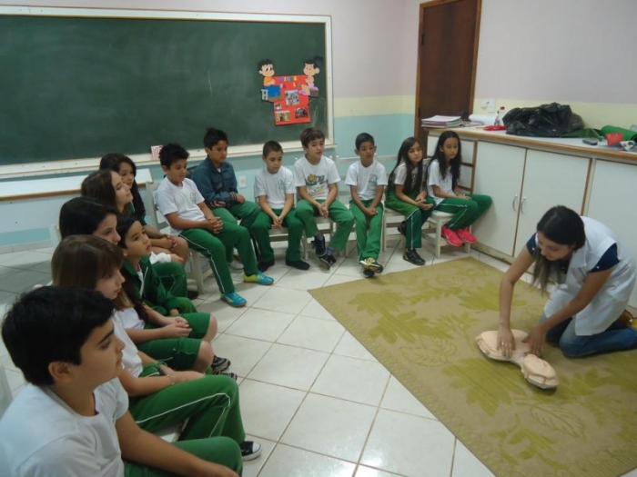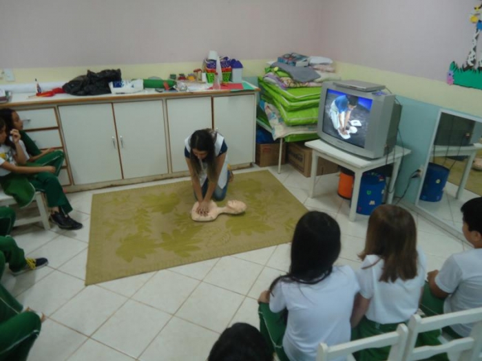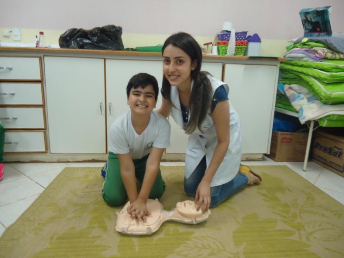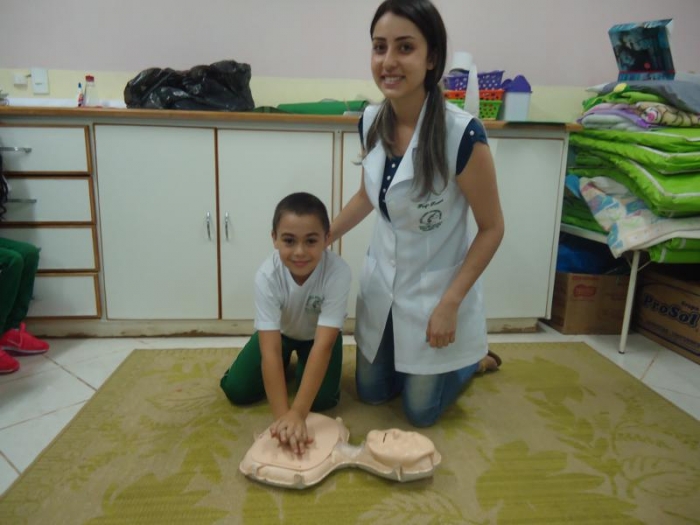 Professora Karina proporciona treinamento de primeiros socorros aos alunos do 3º Ano