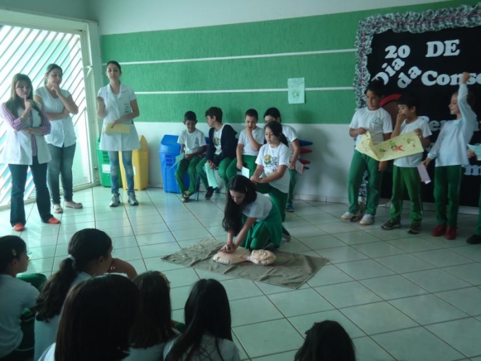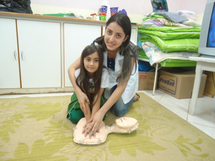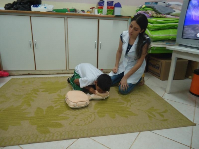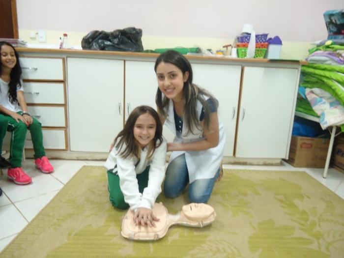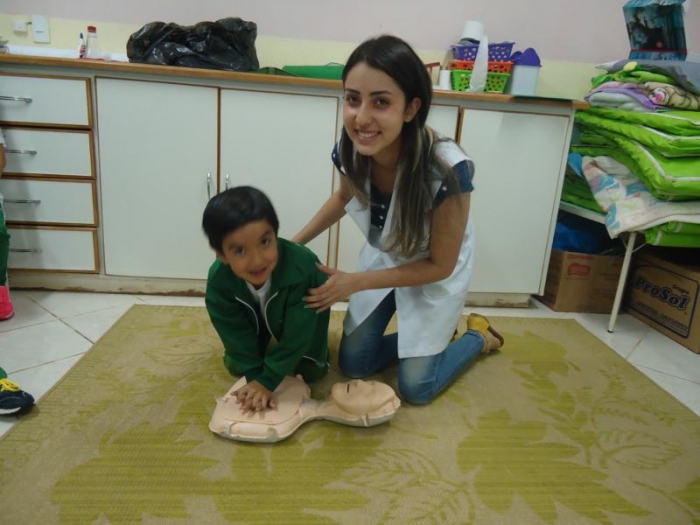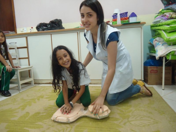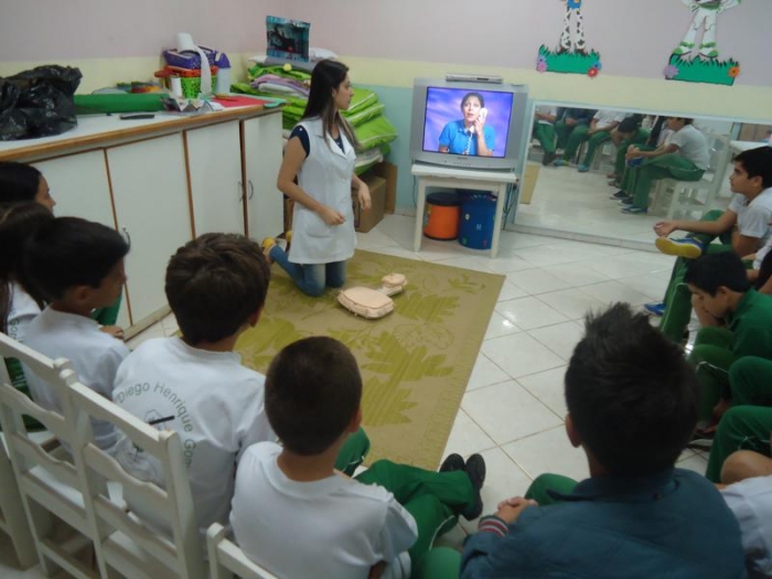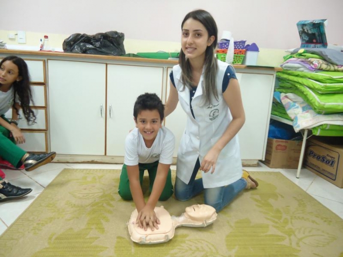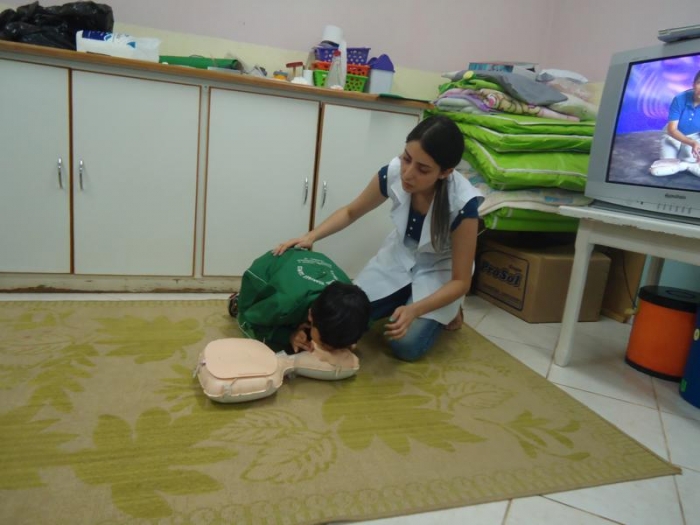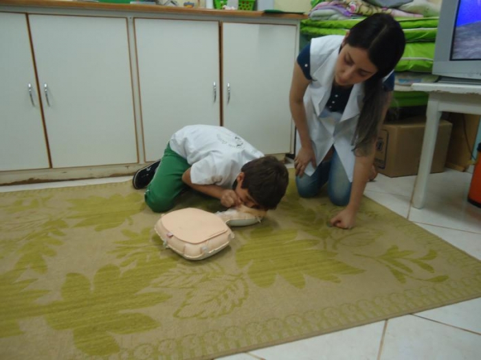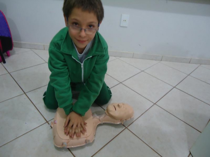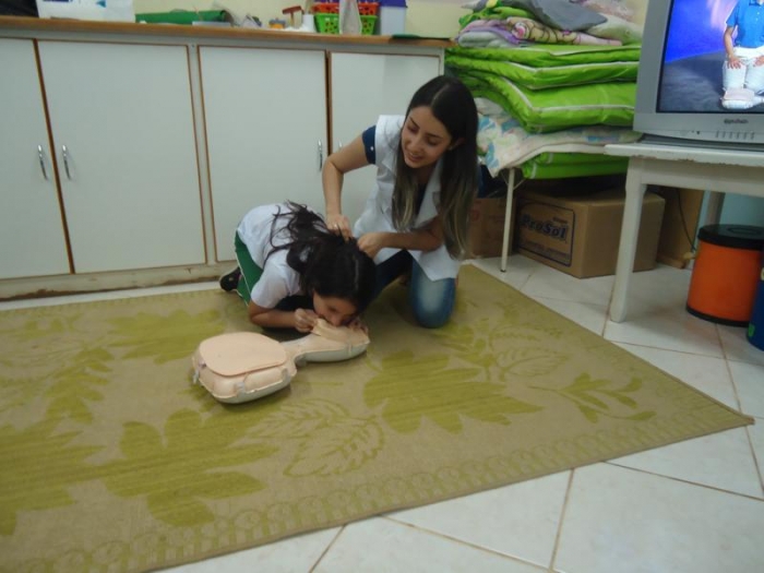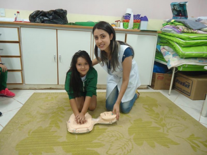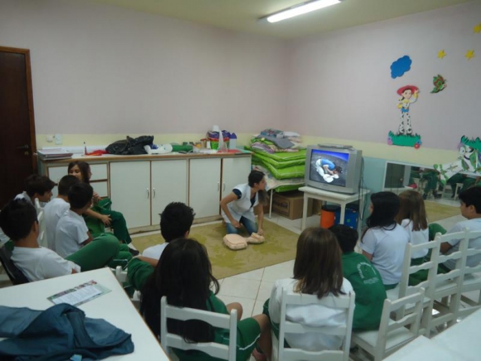 Professora Karina proporciona treinamento de primeiros socorros aos alunos do 3º Ano