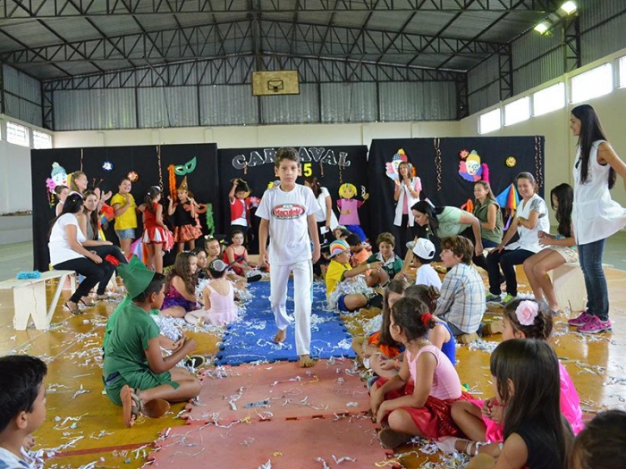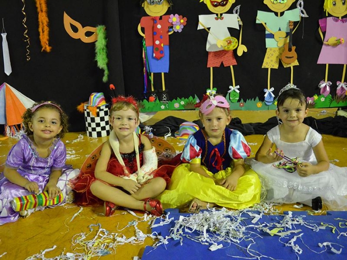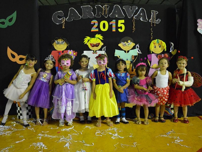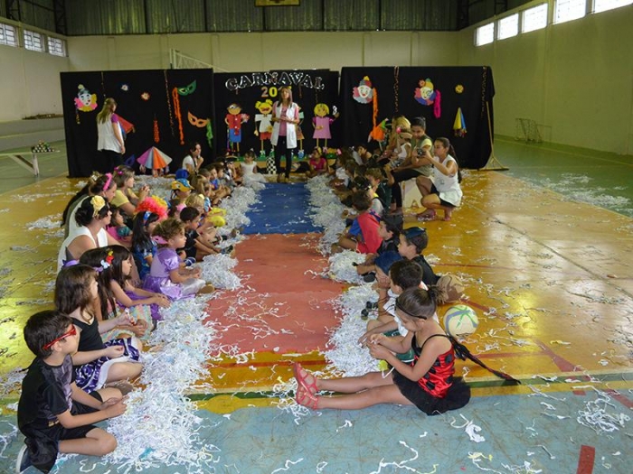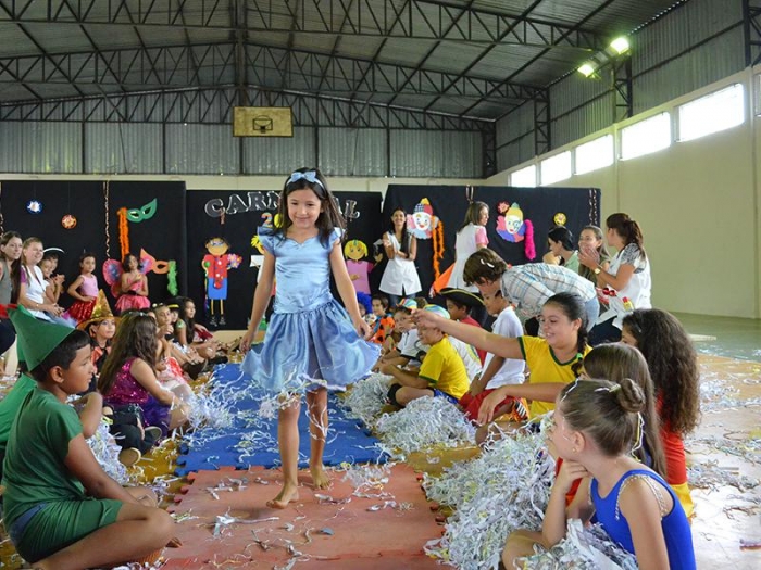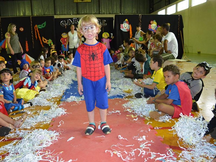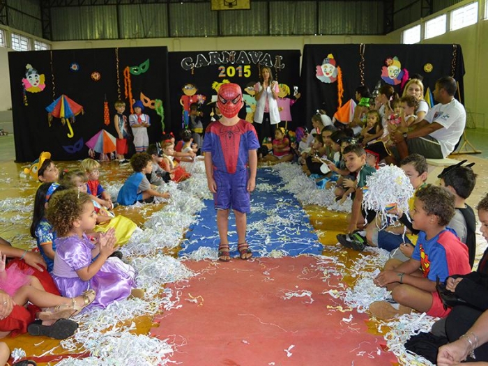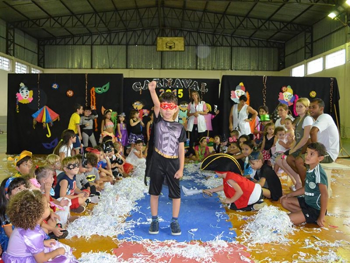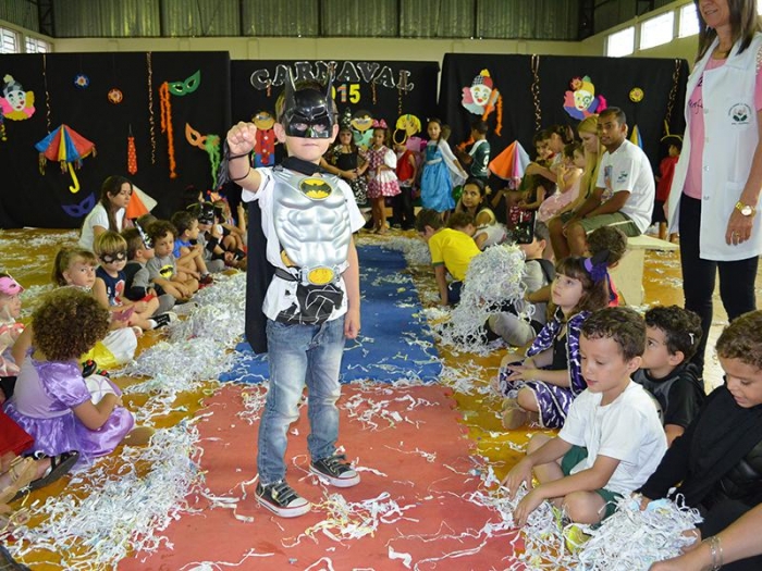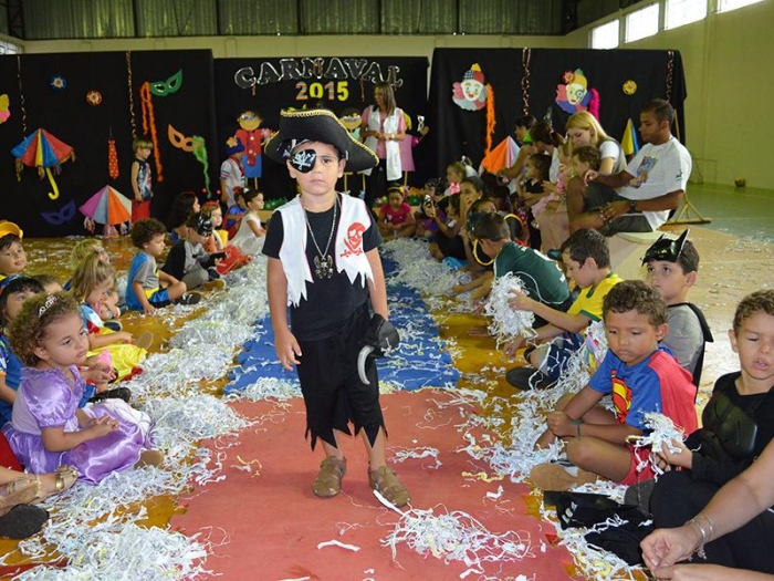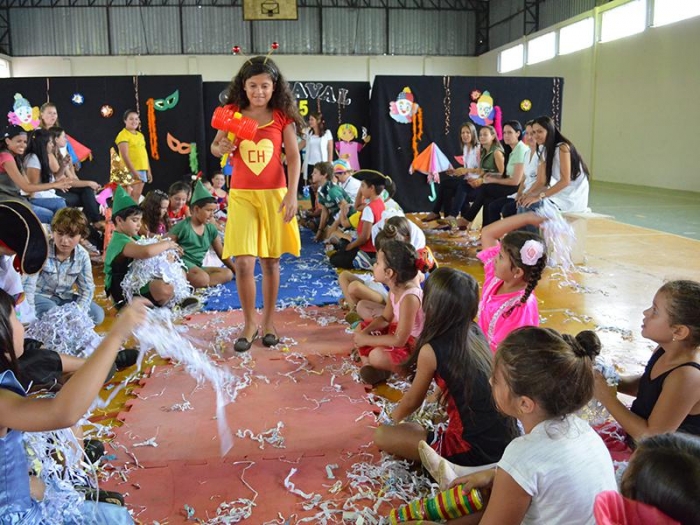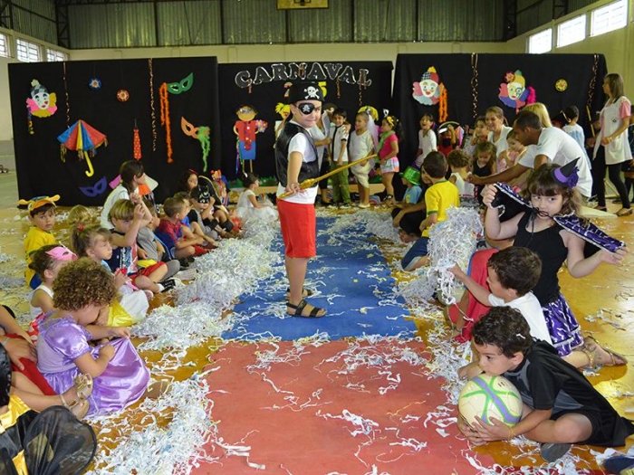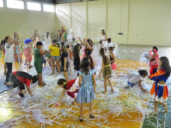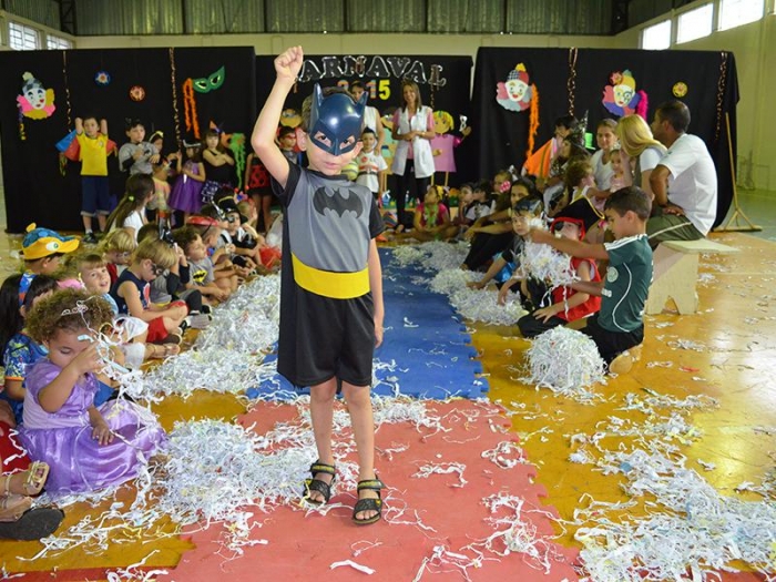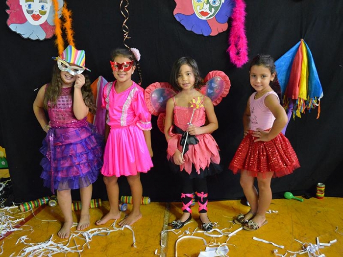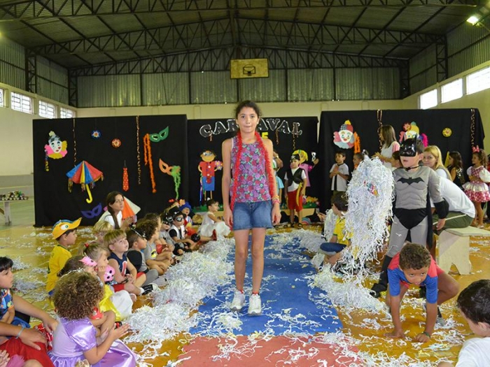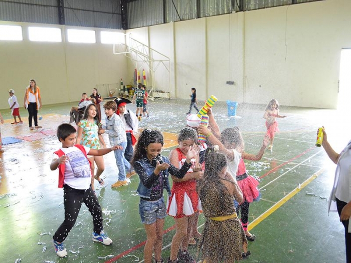 Alunos da Escola Diego comemoram o Carnaval.