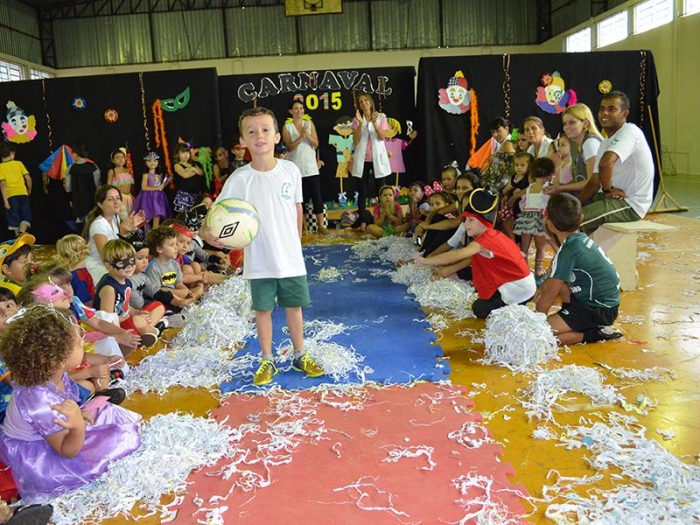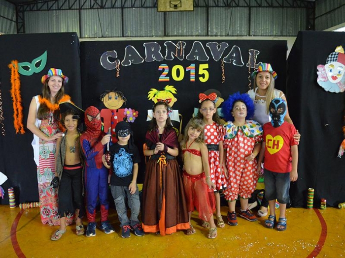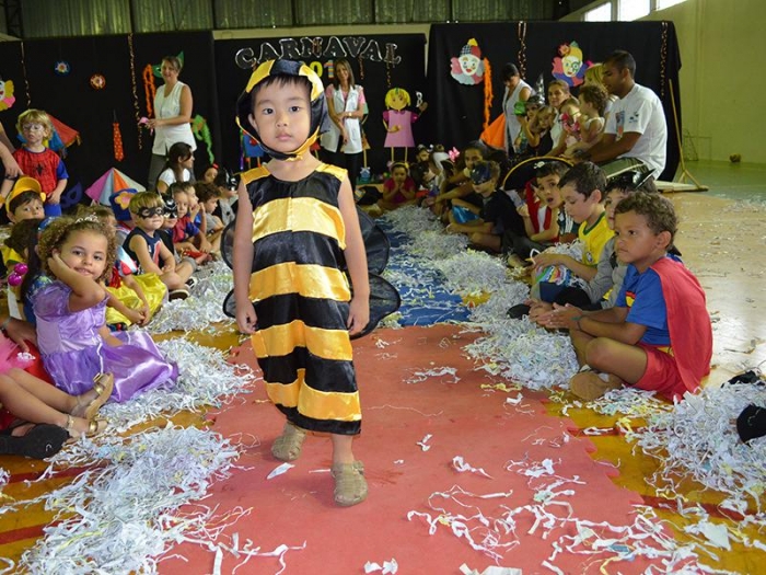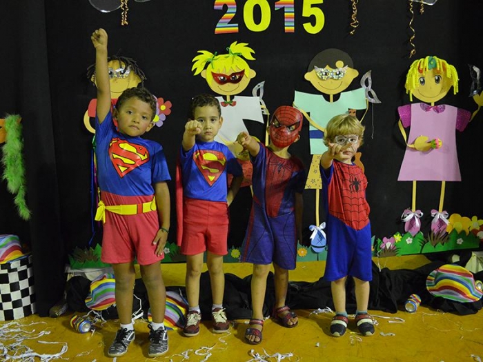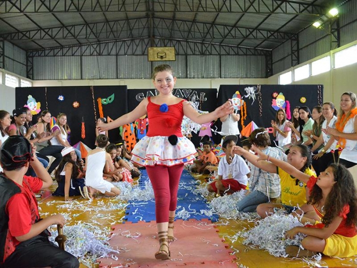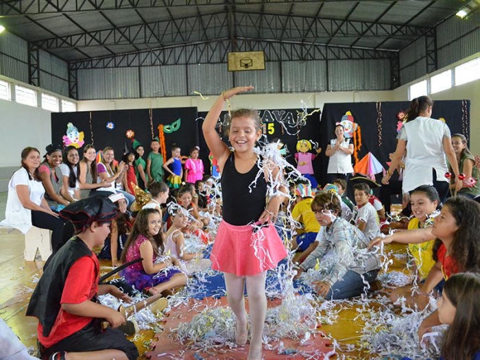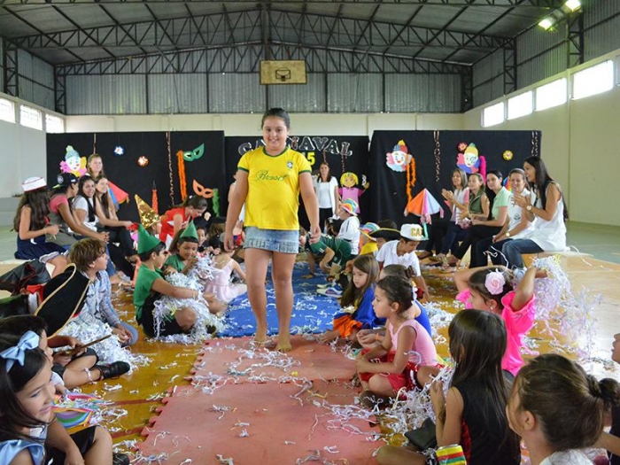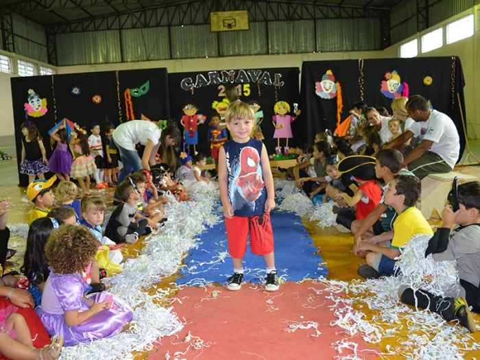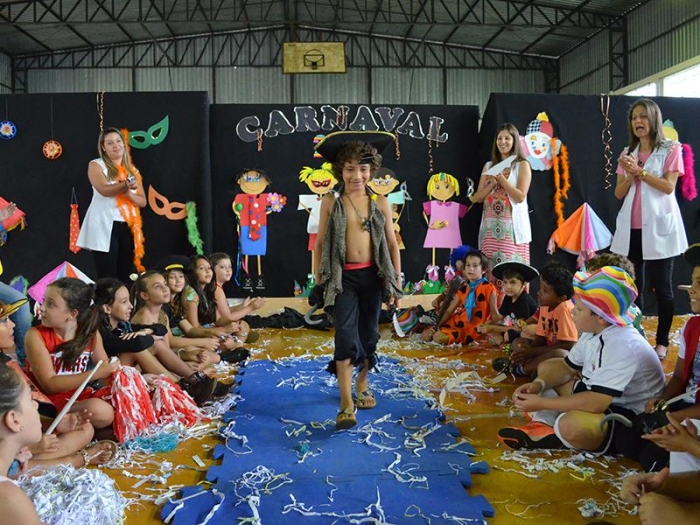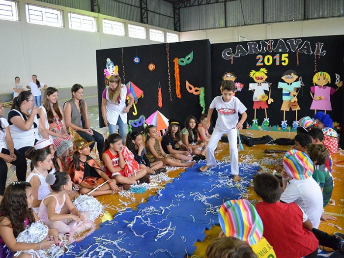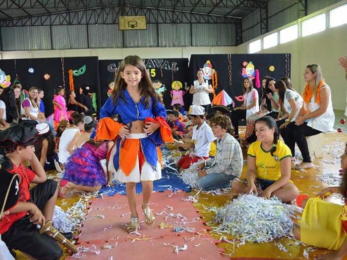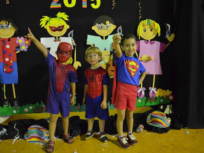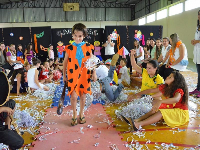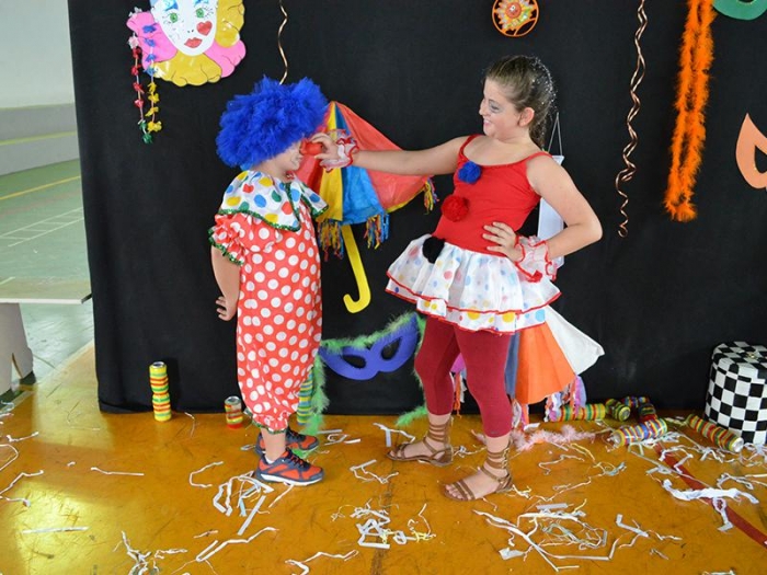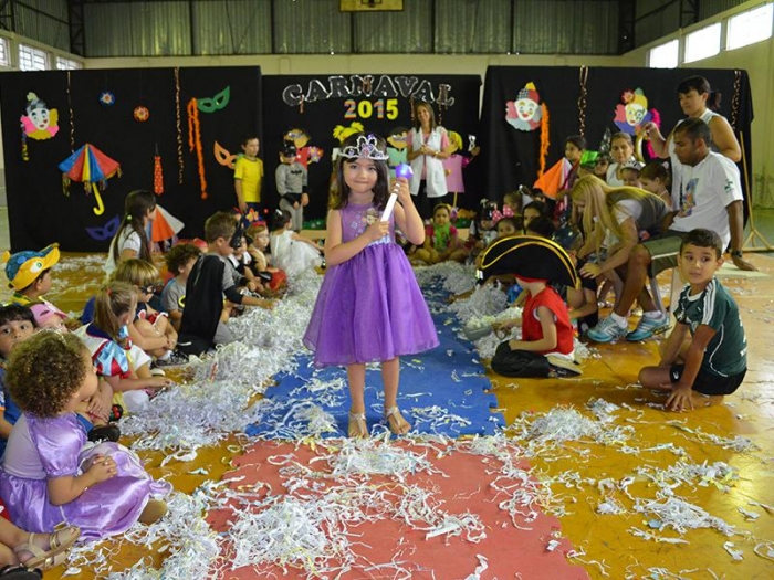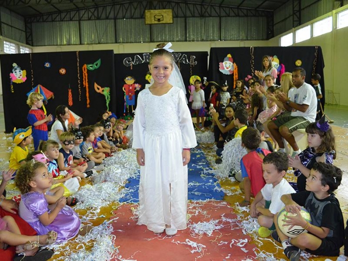 Alunos da Escola Diego comemoram o Carnaval.