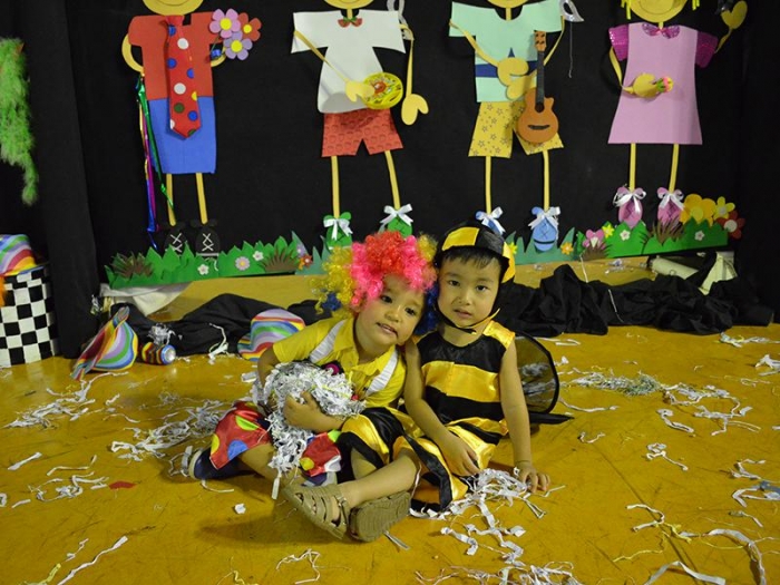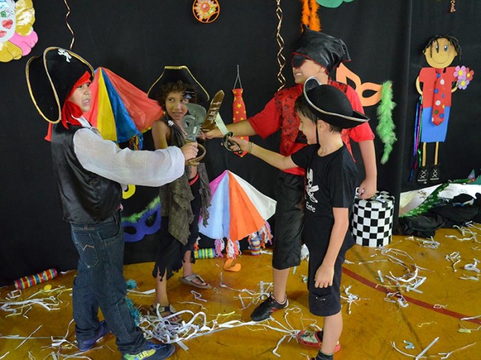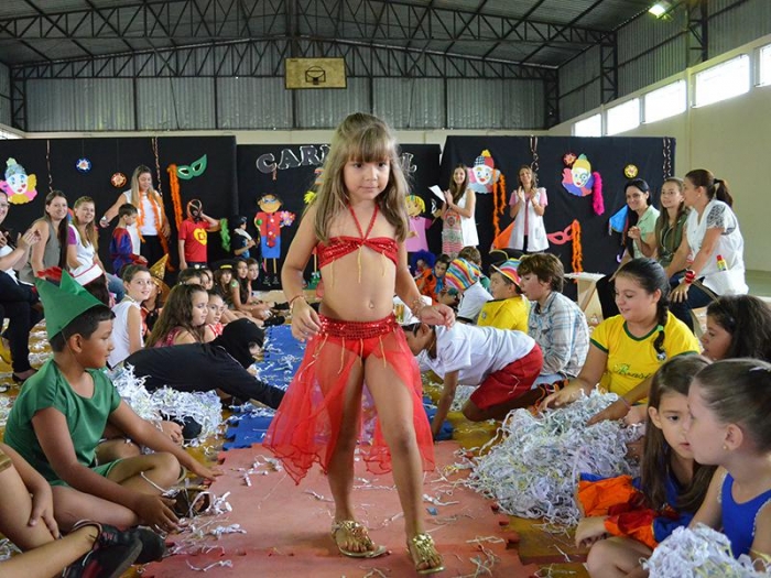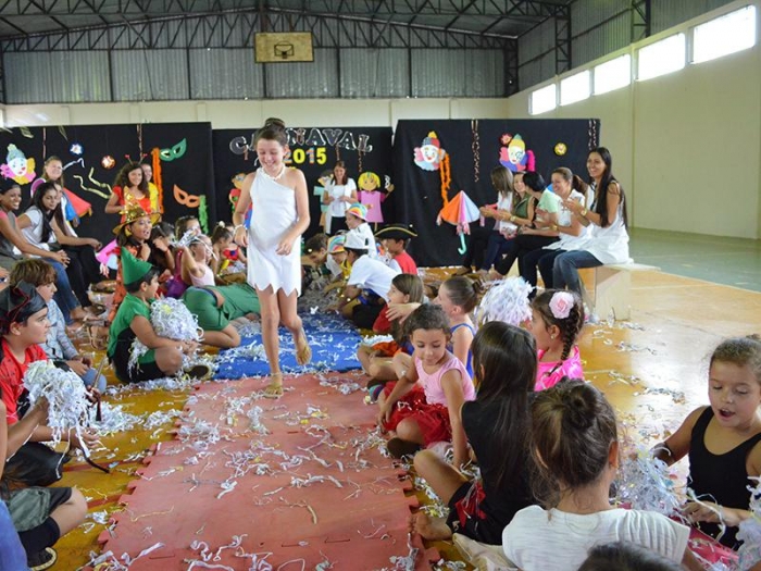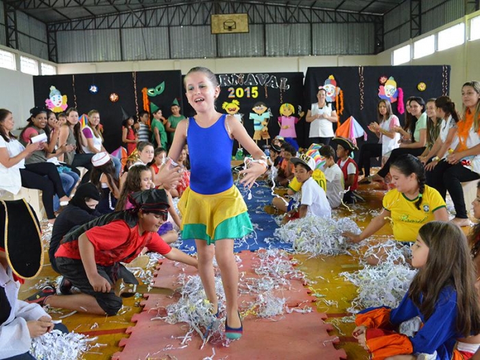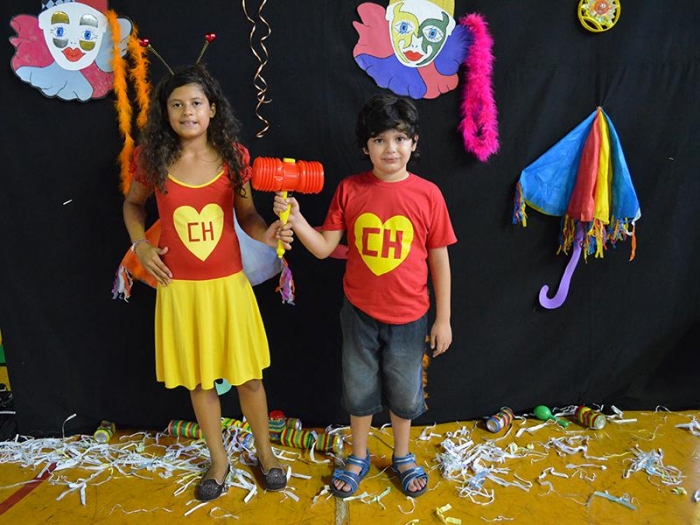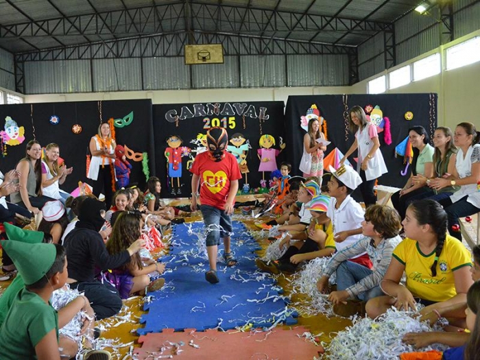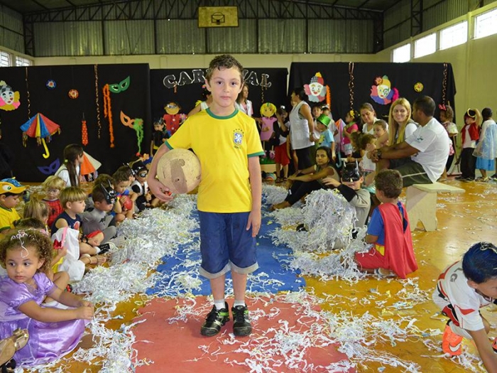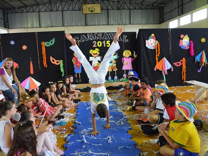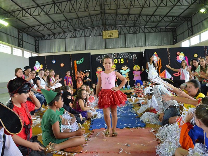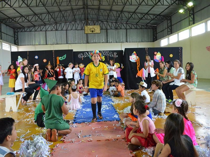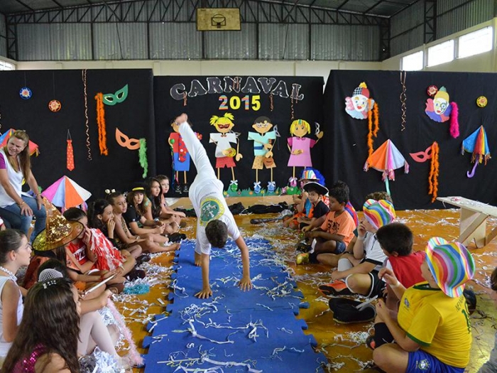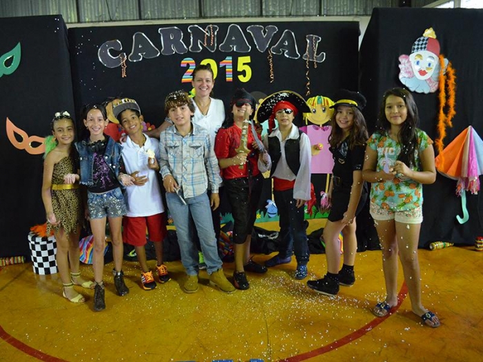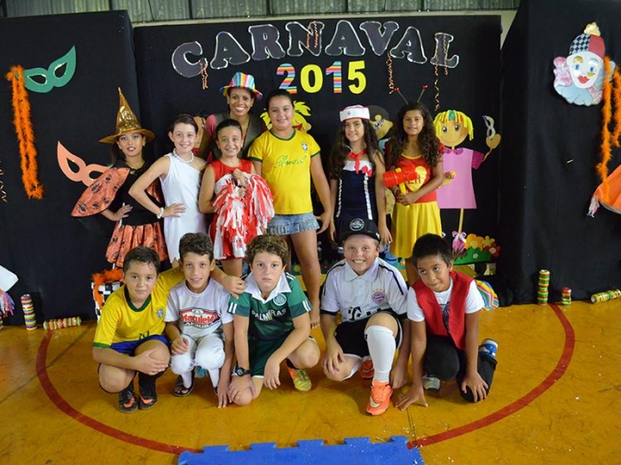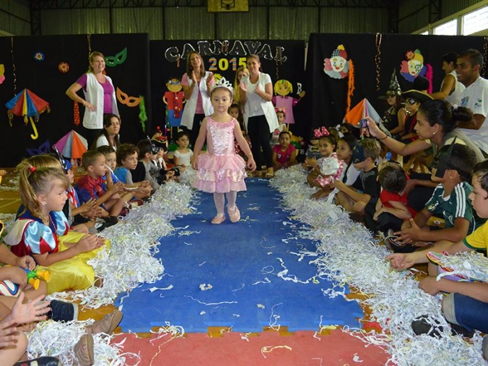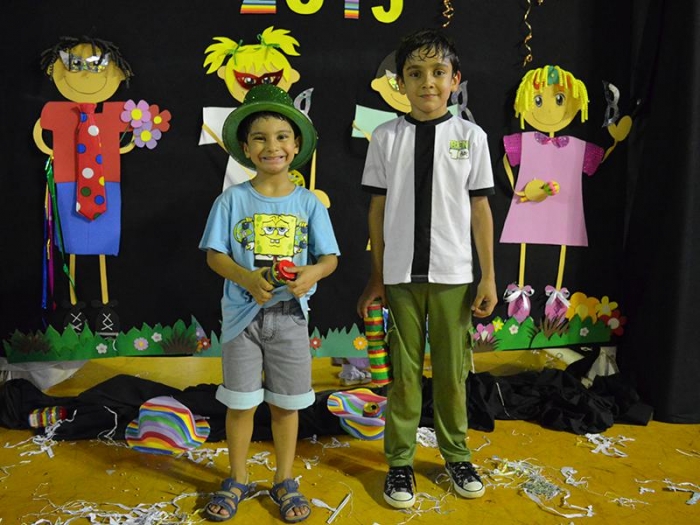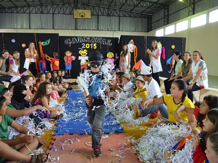Alunos da Escola Diego comemoram o Carnaval.