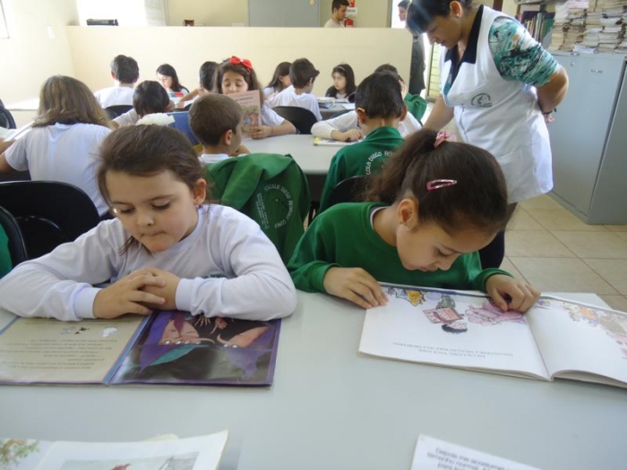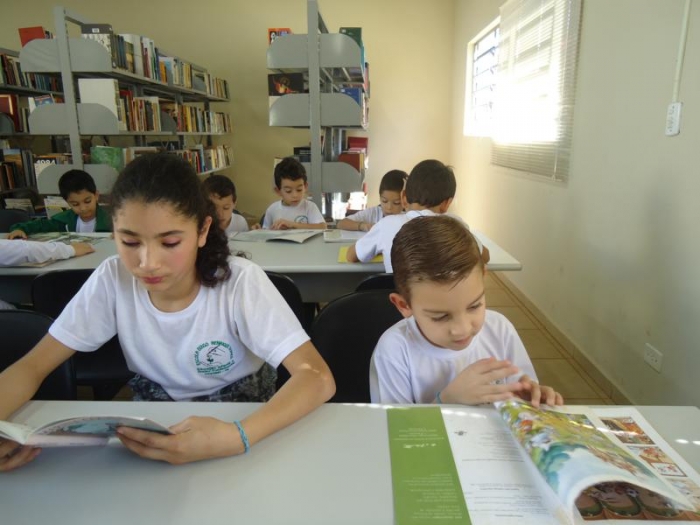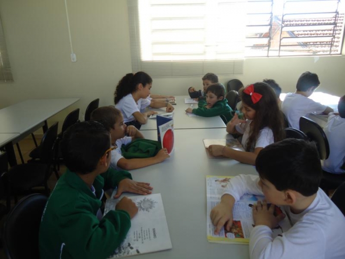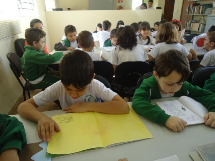 Alunos dos 1º Ano A e 1º Ano B em aula de literatura