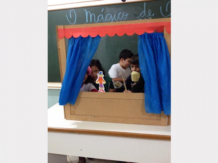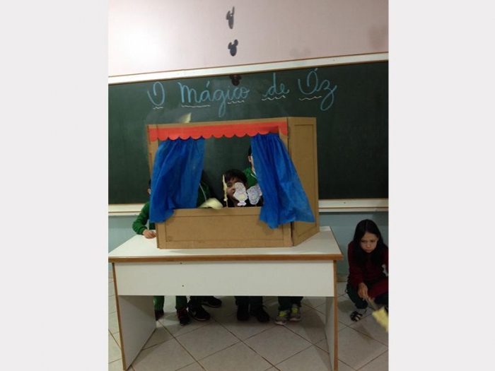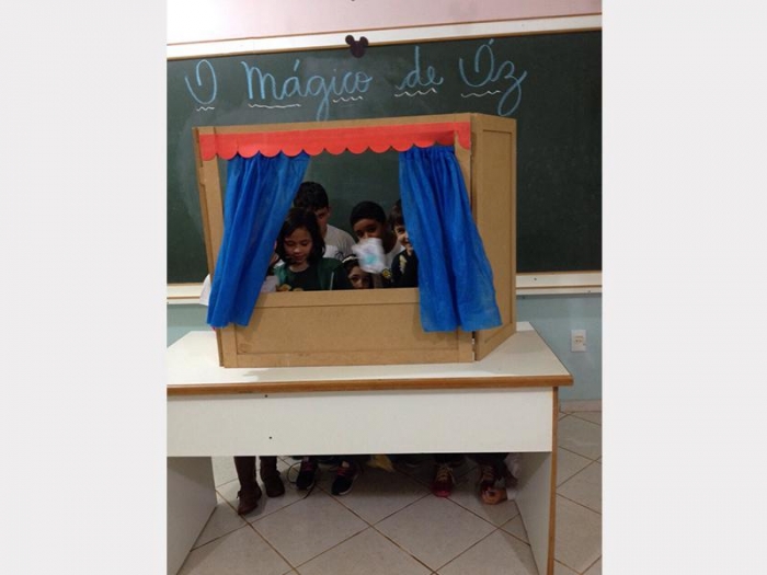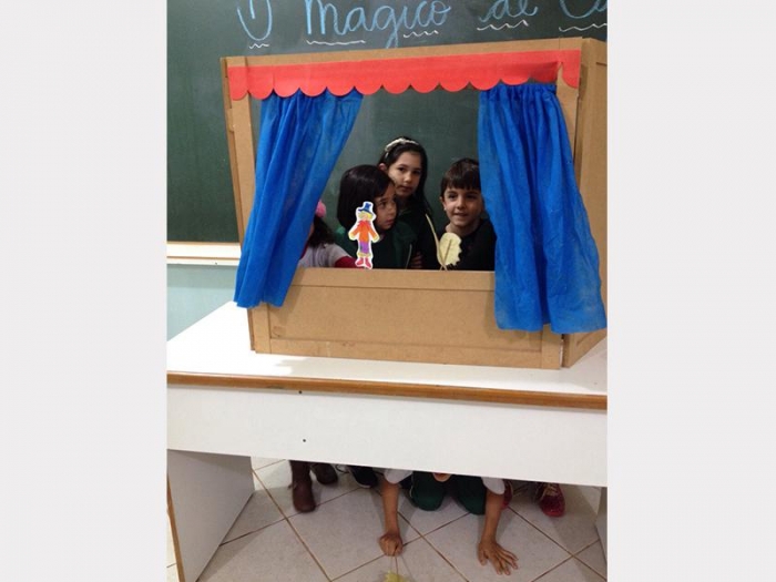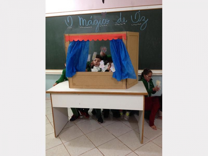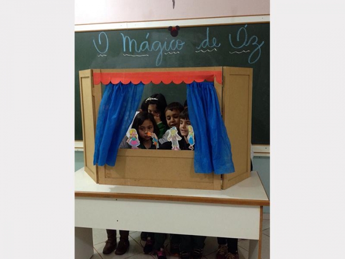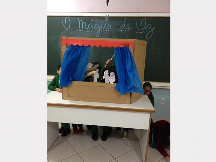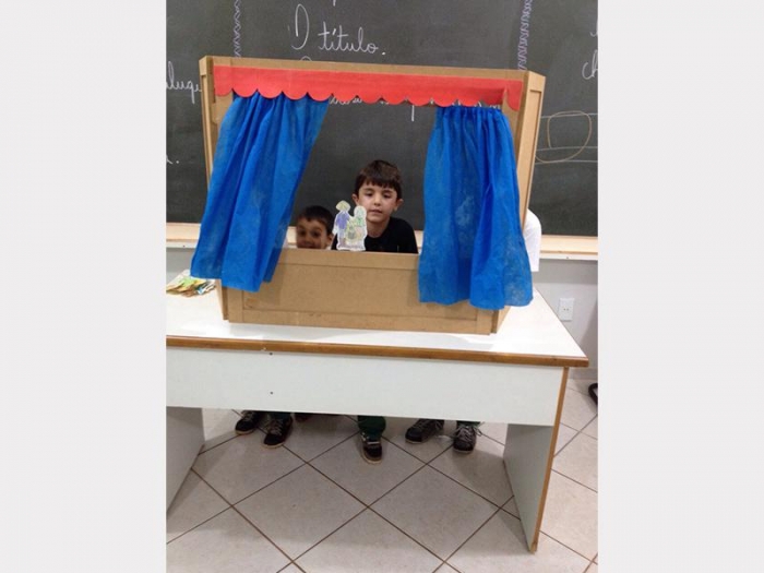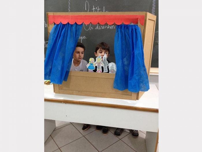 Alunos do 2º Ano A e 2º Ano B, apresentaram uma peça de teatro com fantoches do conto de fadas.