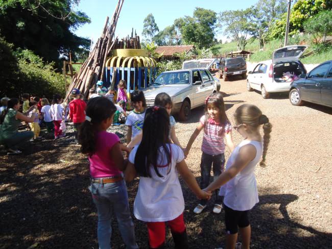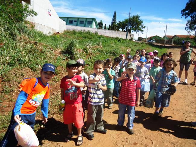 Alunos do maternal ao 1º ano realizam atividade pedagógica na zona rural.