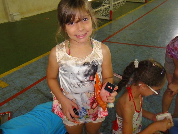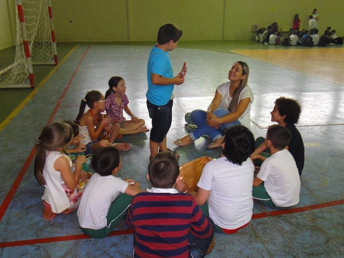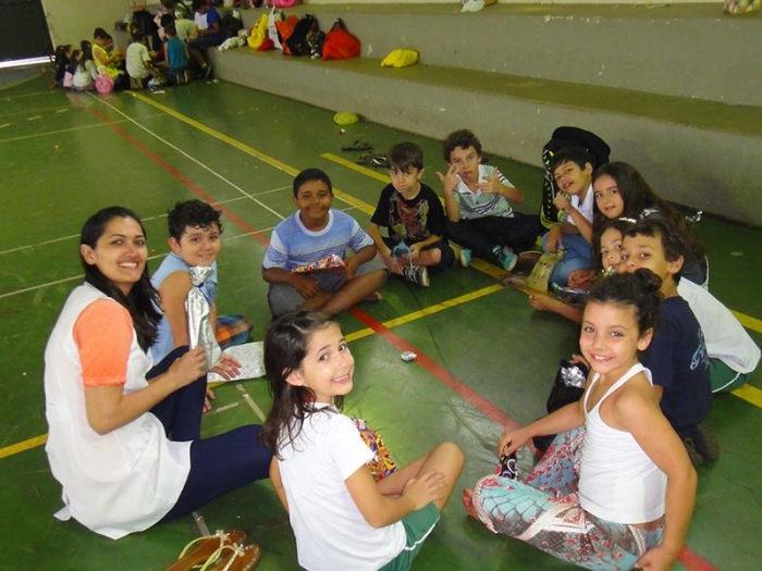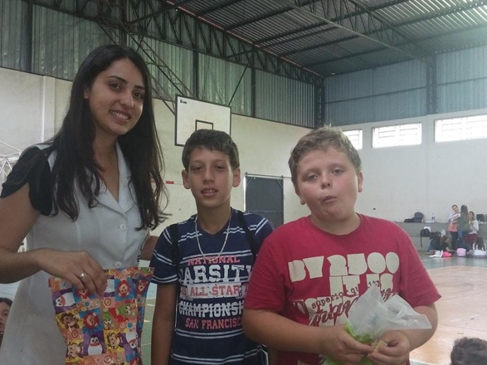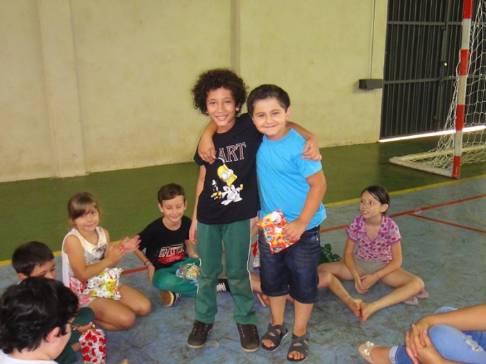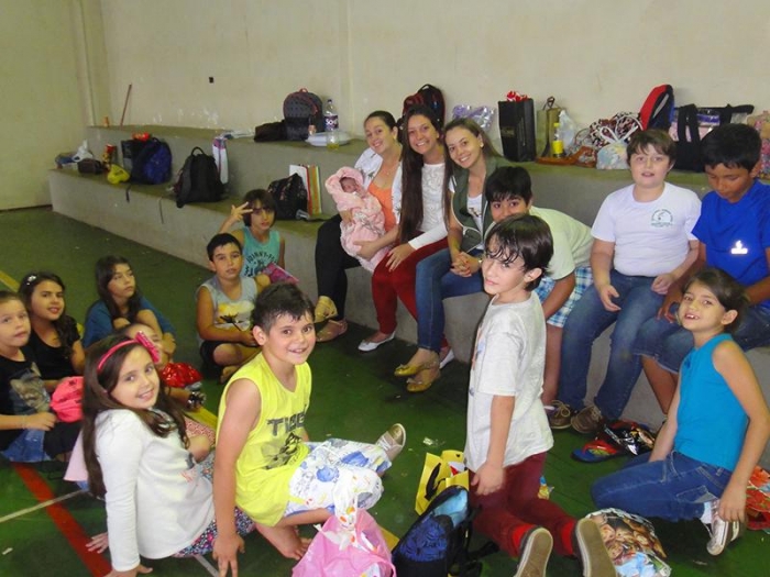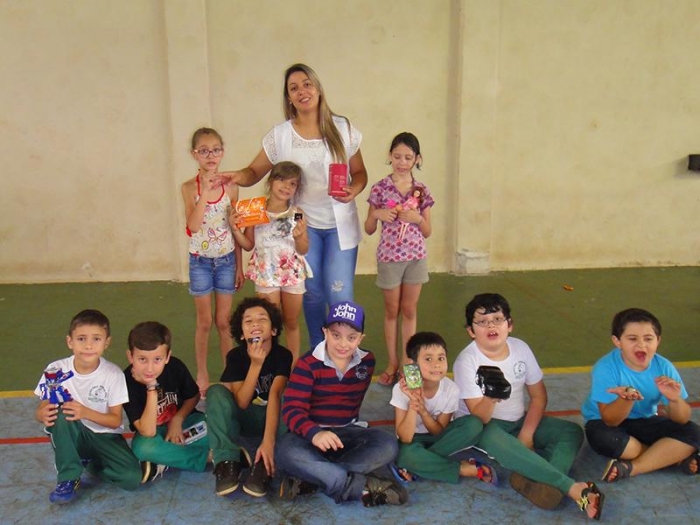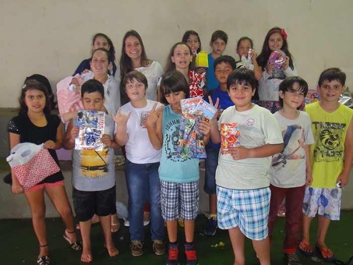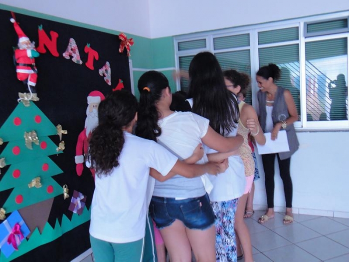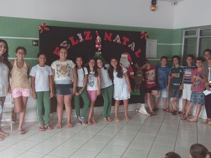 Alunos do 2°A, 2°B, 3°, 4° e 5° Ano confraternizam-se revelando o amigo secreto