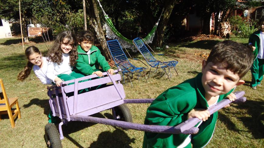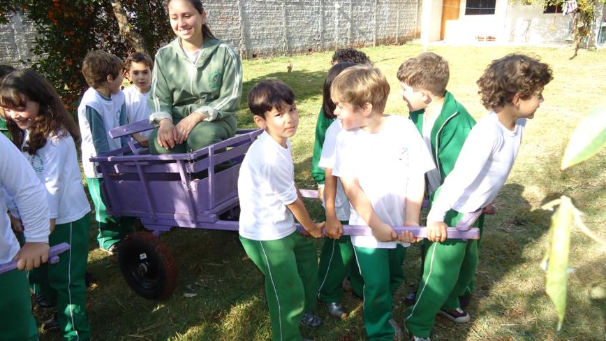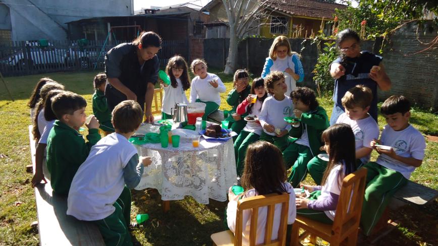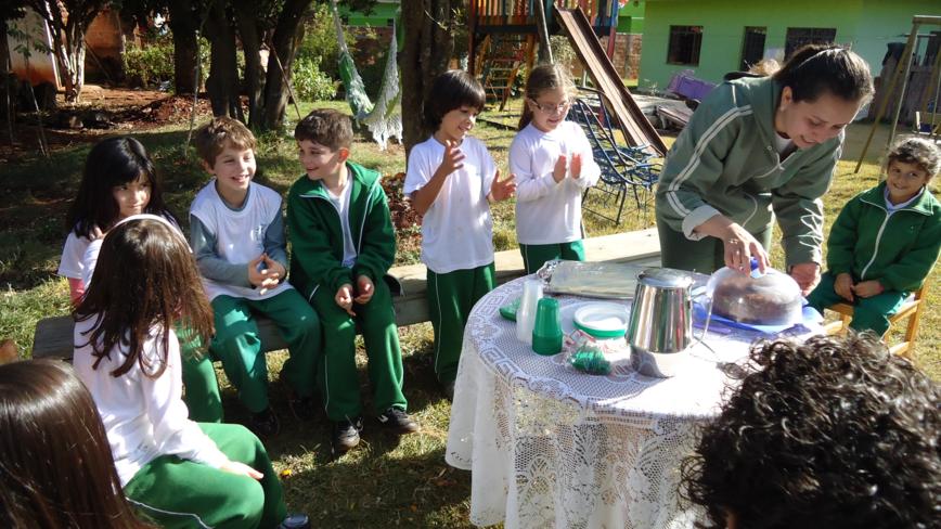 Alunos do 1º ano visitam a casa do colega Vinícius, confira as fotos.