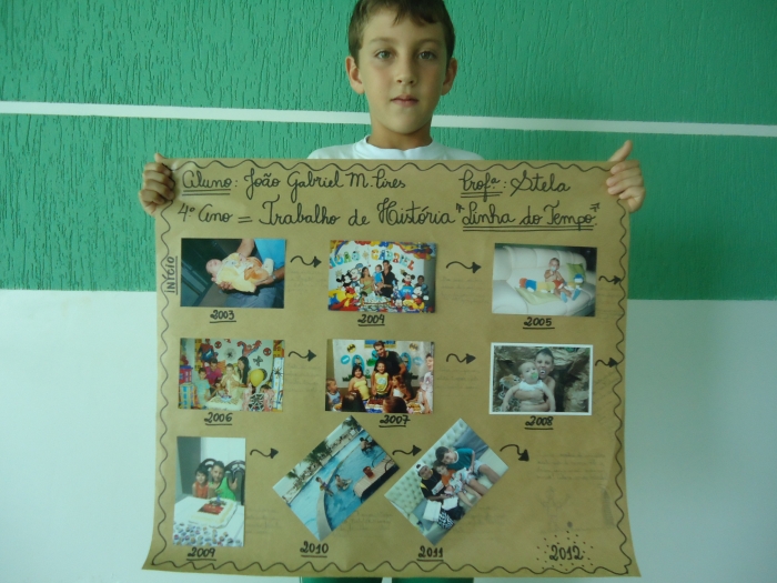 Os alunos do 4º Ano da professora Stela trabalham a linha do tempo