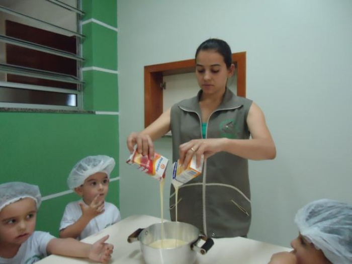 Com esse intuito as professoras do maternal Vanessa e do Pré I Fabiane, juntamente com as auxiliares Raissa e Gabriely e com a ajuda do alunos, fizeram um delicioso brigadeiro e por isso não podiam deixar de compartilhar com os pais essa experiência e mostrar o quanto aprender pelo fazer é inesquecível.